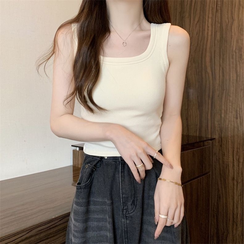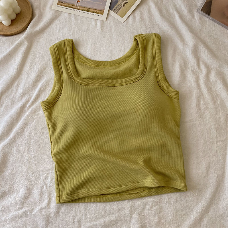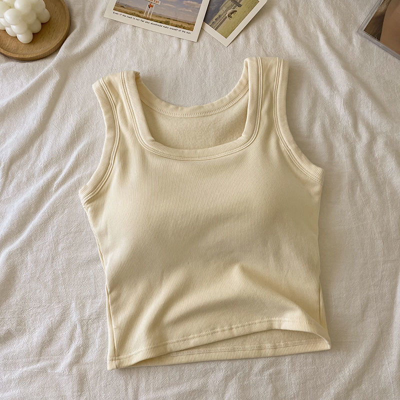 2024 人気 カップ付きインナー 秋冬スクエアネック保温ベストスリム ショート丈 キャミソール タンクトップ ヨガ 美背 レディース キャミソール