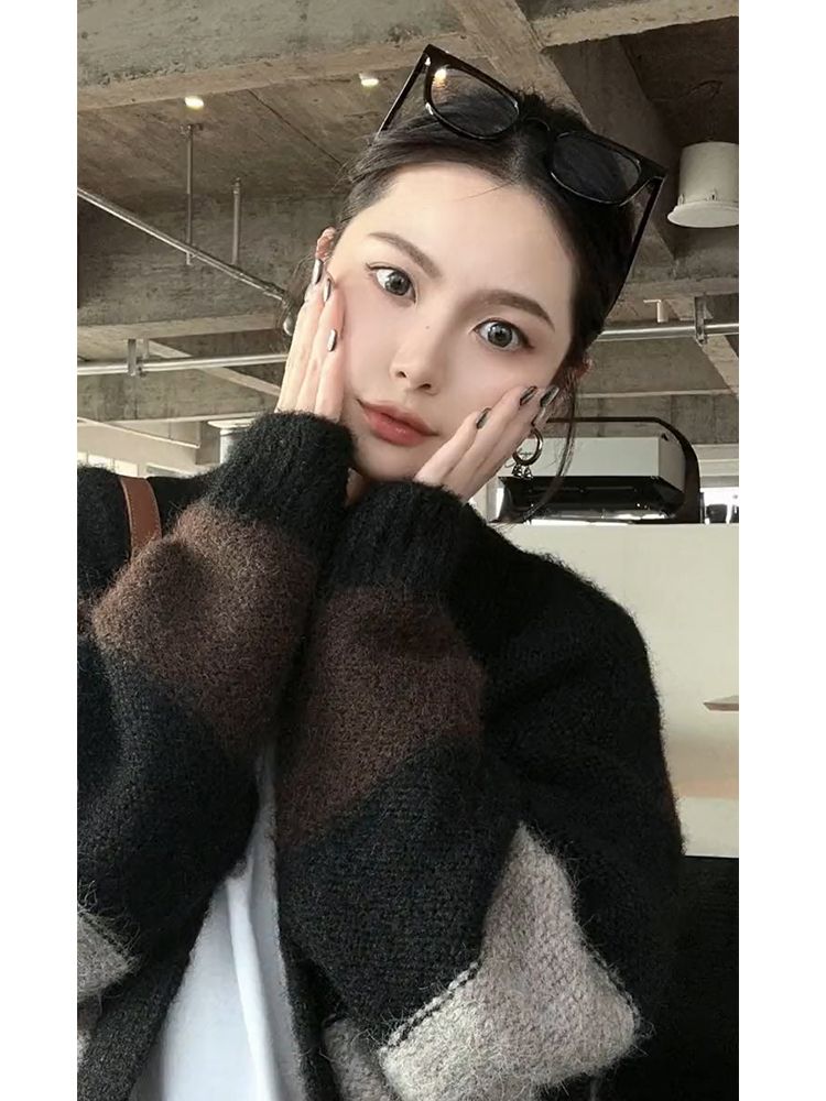 韓国ファッションニットカーディガン流行りベーシックニットゆったりスウェットトップス 長袖ニットトップス セーター 着痩せ セミロング丈 秋アウターメガ割