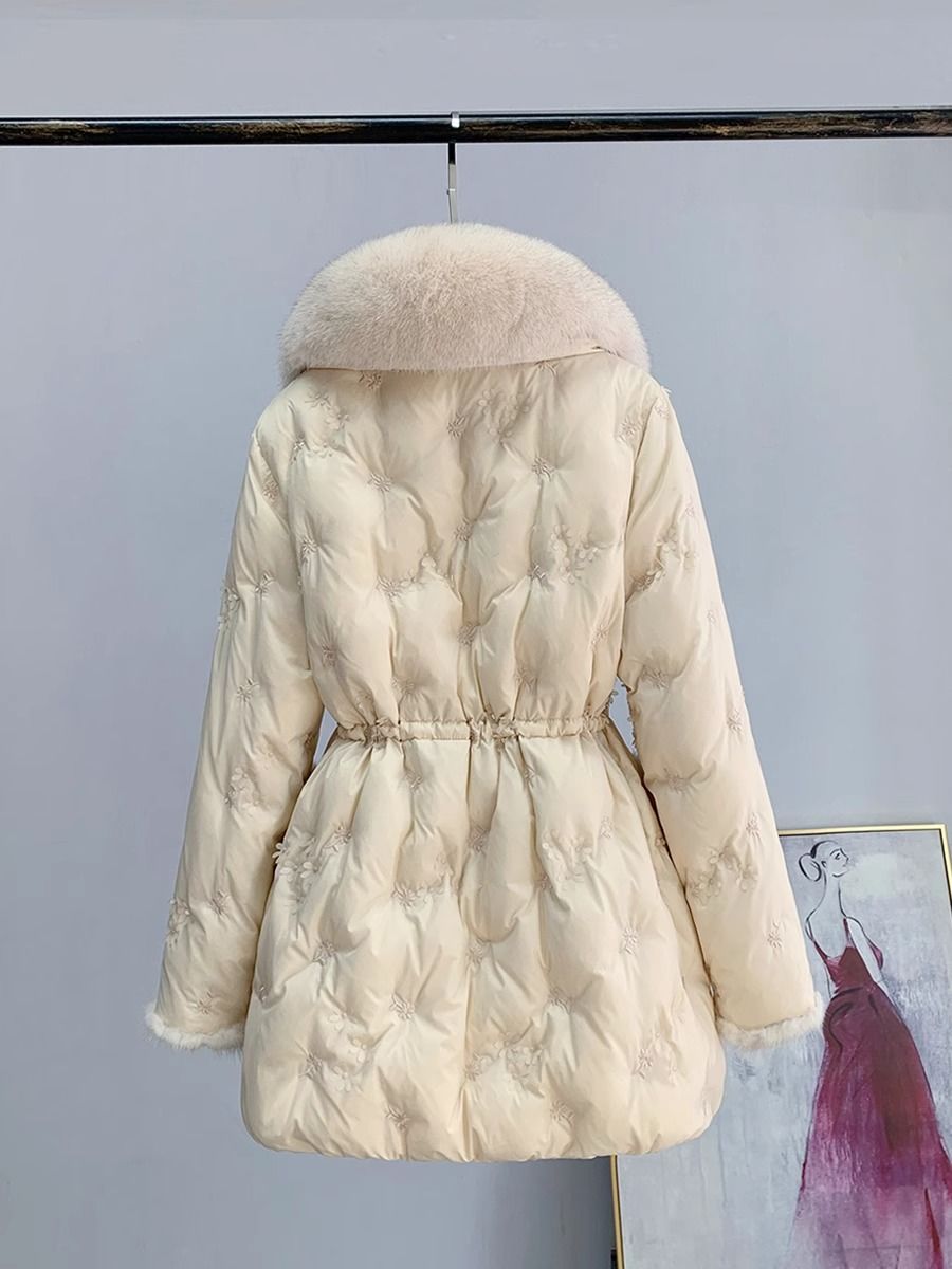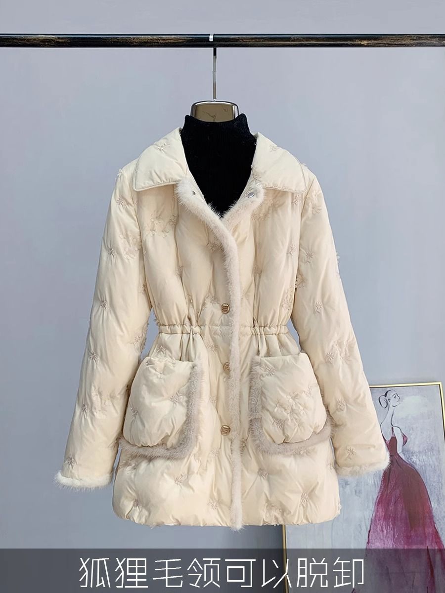 冬のキツネの毛の襟は毛皮のダウンジャケットの女性の長いミンクの毛の白いアヒルの毛の冬の保温コートを脱ぐことができる ダウンジャケット コート