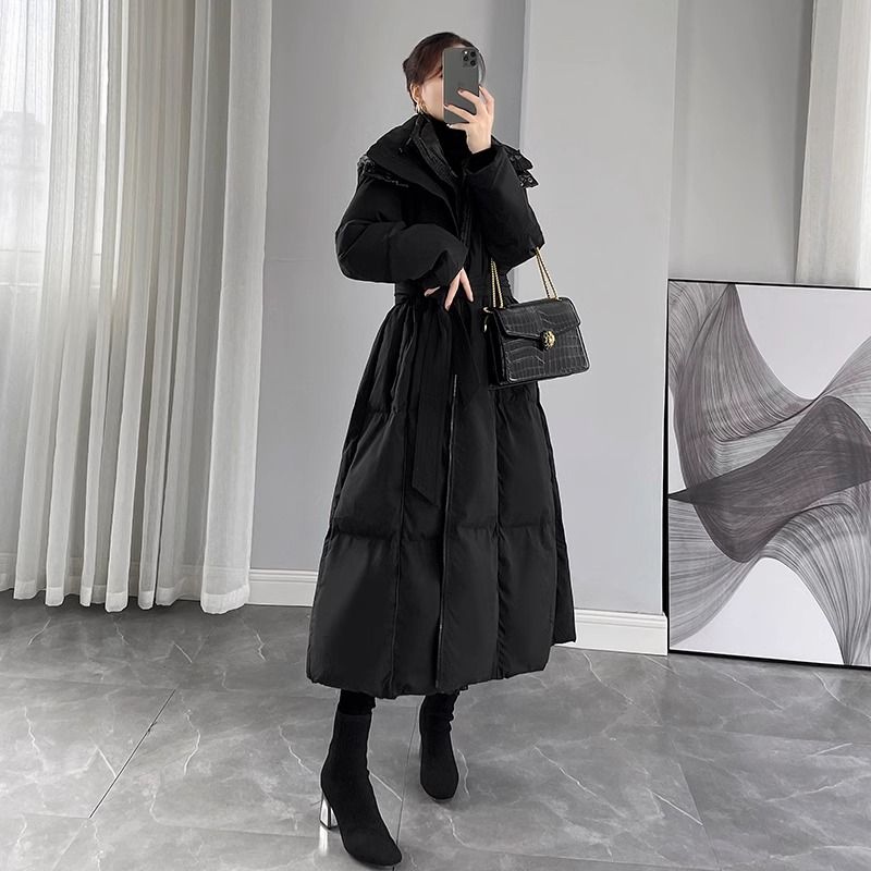 2024年冬の新型修身超ロングタイプ膝黒ダウンジャケット女装帽子白鴨ダウンコートが厚くなった ダウンジャケット コート