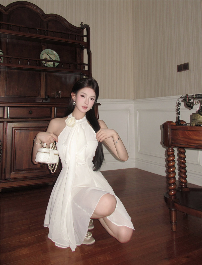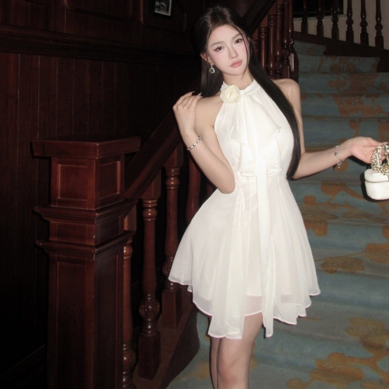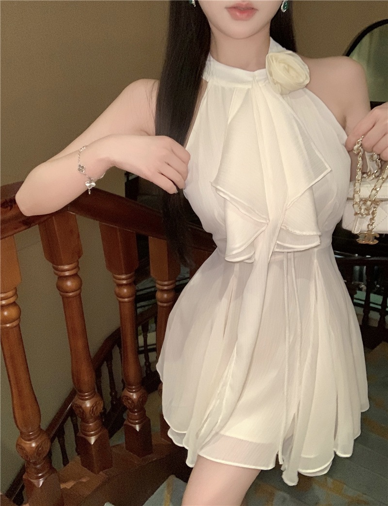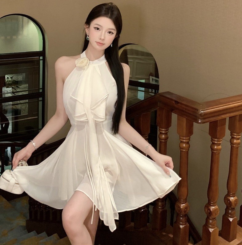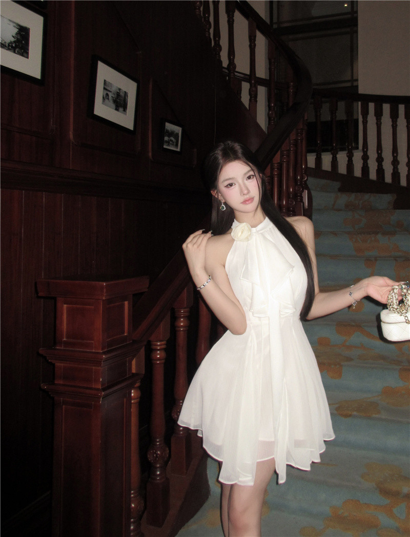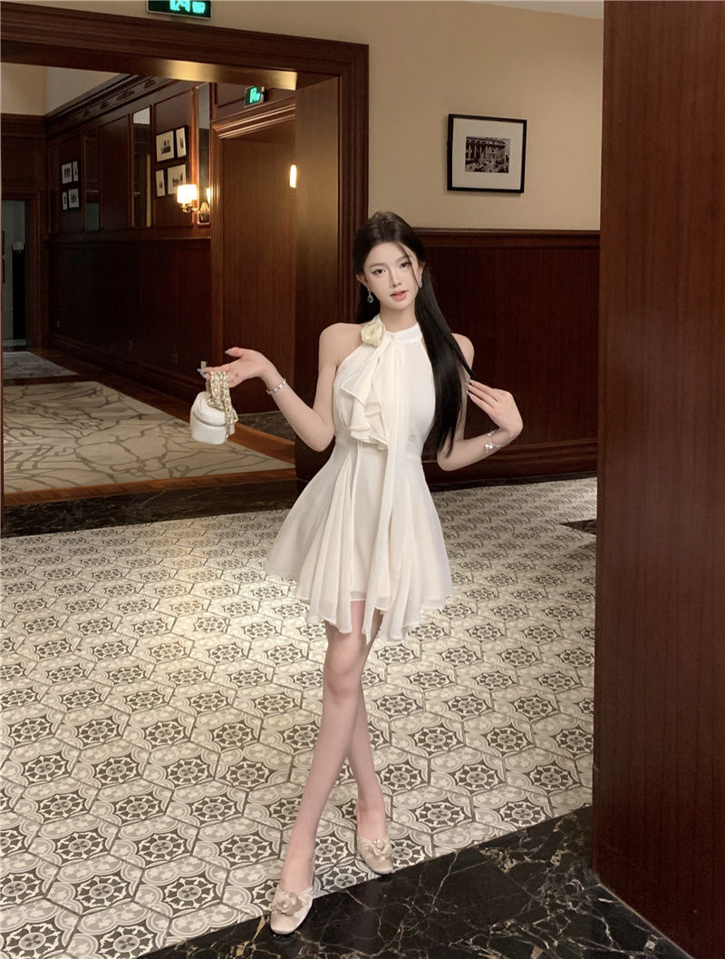 立体花 ワンピース 袖なし ミニ丈 膝上丈 ウエストマーク ドレス レディース 春 夏 秋 パーティー 宴会 おしゃれ ファッション 袖なしミニ 膝丈ワンピ