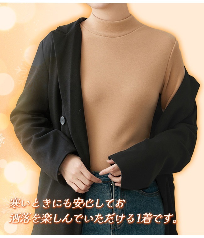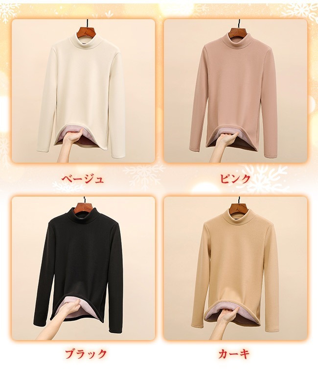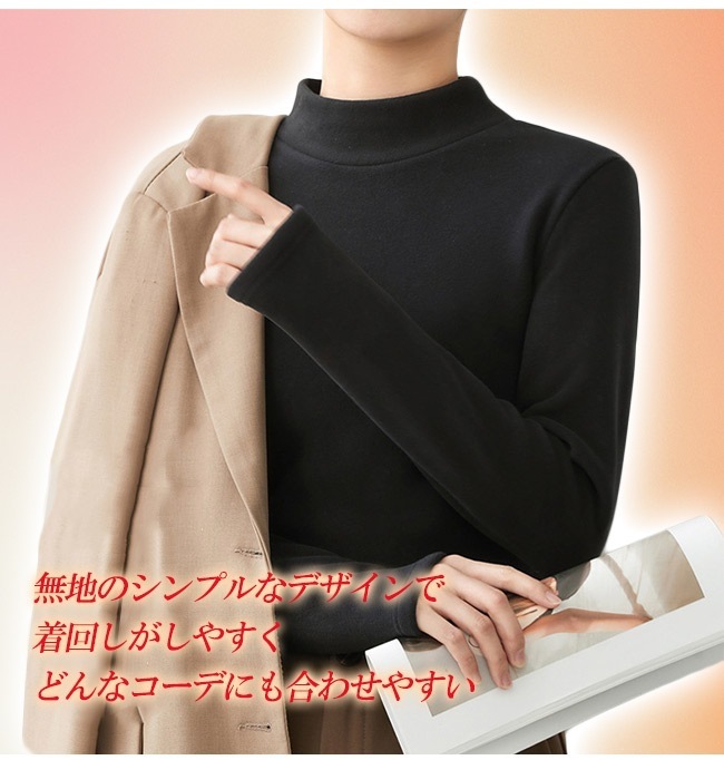 極暖 両面起毛 タートルネック インナー 秋冬 裏起毛 長袖 トップス あったか レディース カットソー おしゃれ 無地 柔らかい OL 通勤 オフィス