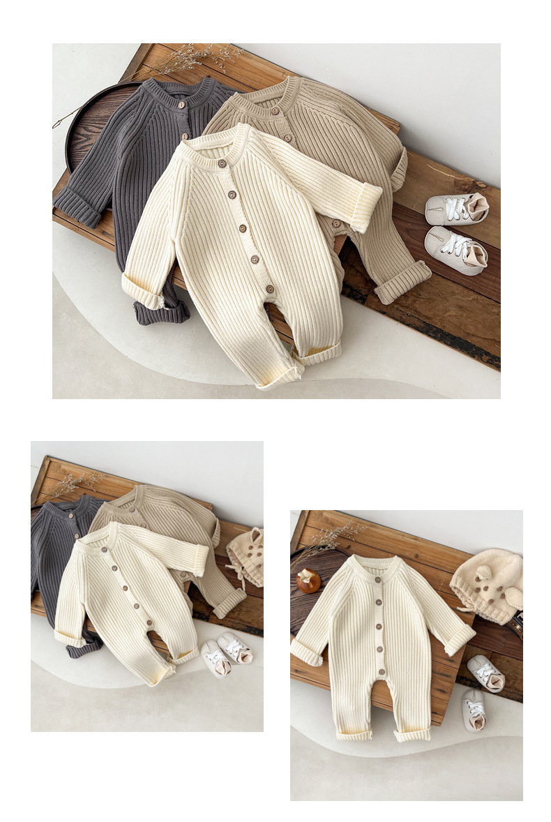 ベビー服 キッズ ins 新生児 赤ちゃん おしゃれ 百掛け ベビー ソリッドカラー ニット ハイハイウェア 春秋 ボディスーツ 韓国 ロンパース