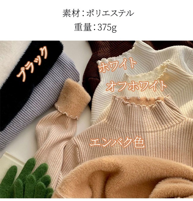 ロイヤル 裏起毛 ニット トップス レディース フリルネック ミドルネック セーター モックネック 裏ボア 秋冬 長袖 オフィス カジュアル 暖か 防寒