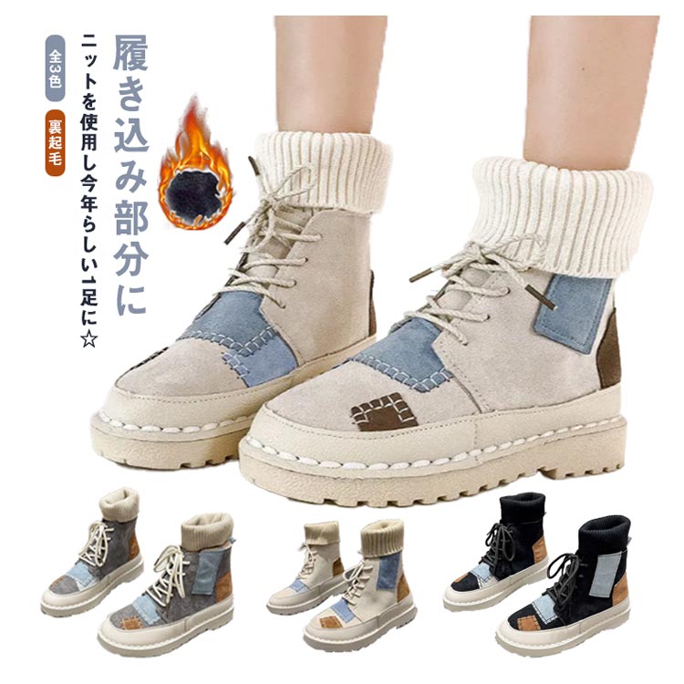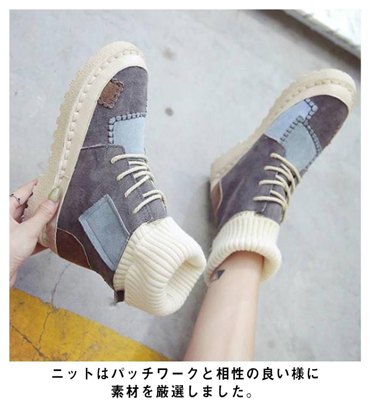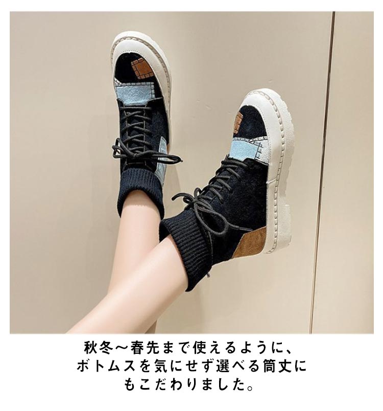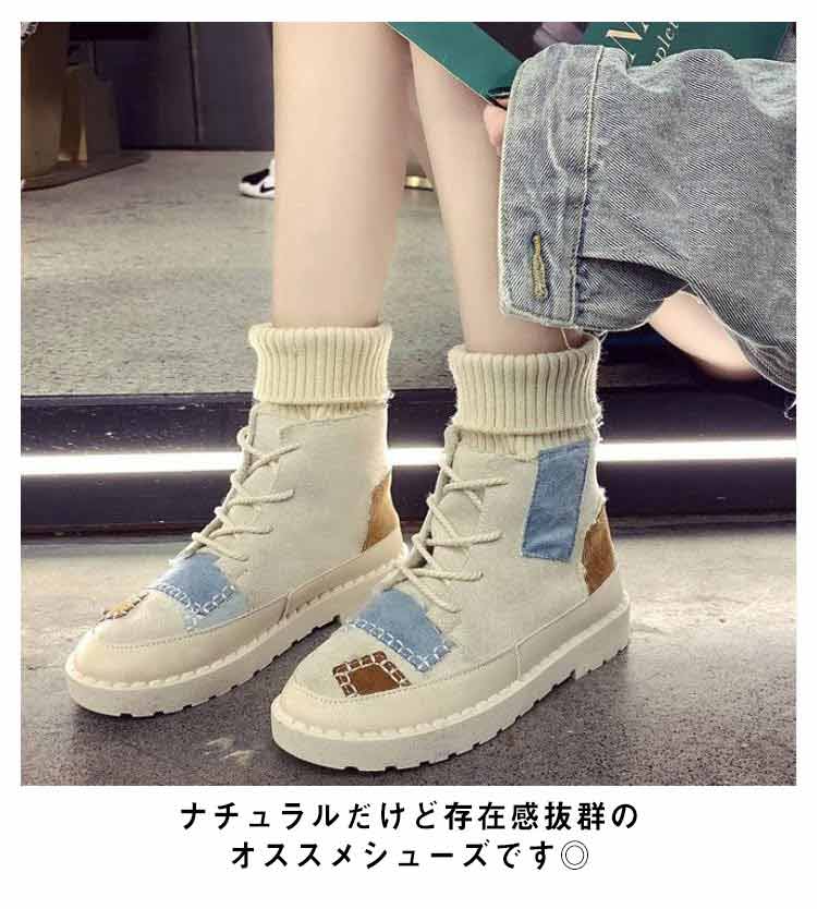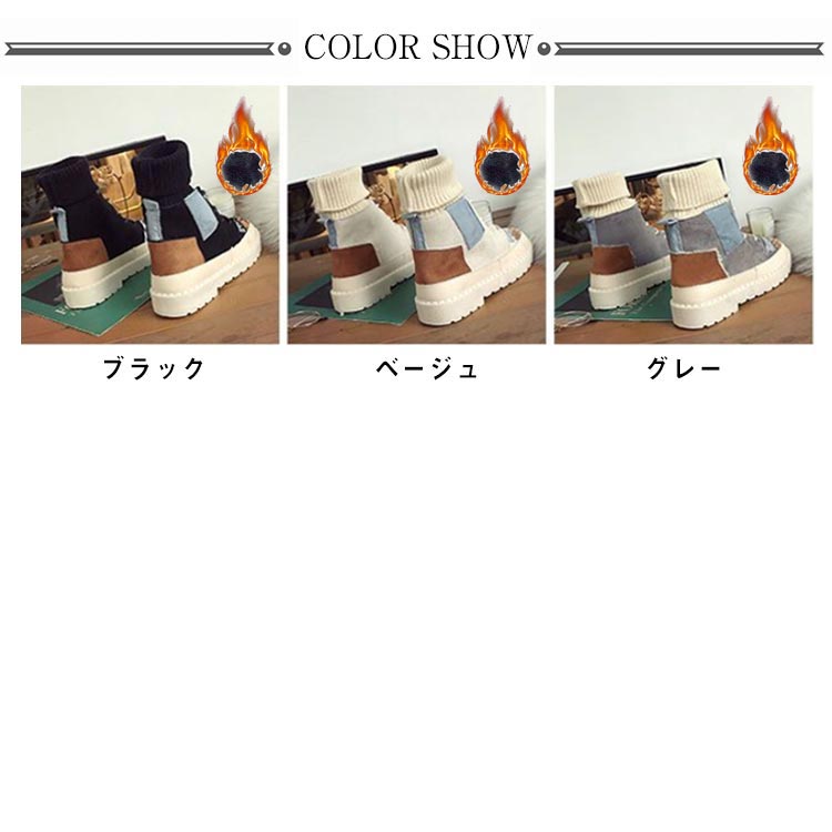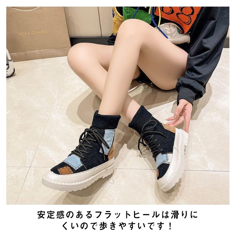 パッチワークショートブーツソックススニーカー裏起毛レディース切り替えソックスブーツ女子滑りにくい履きやすい歩きやすい疲れにくい可愛いおしゃれカジュアル通学秋冬全3色
