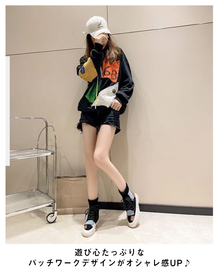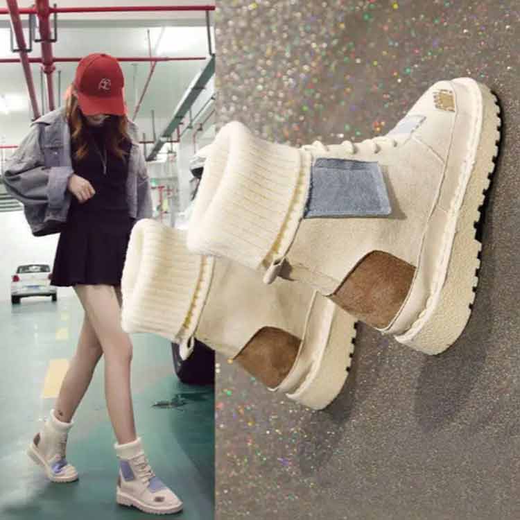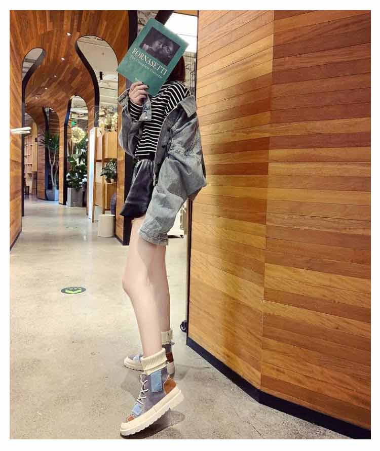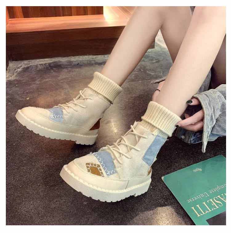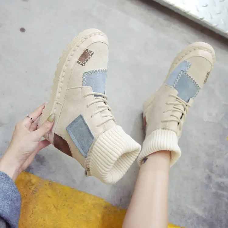 パッチワークショートブーツソックススニーカー裏起毛レディース切り替えソックスブーツ女子滑りにくい履きやすい歩きやすい疲れにくい可愛いおしゃれカジュアル通学秋冬全3色