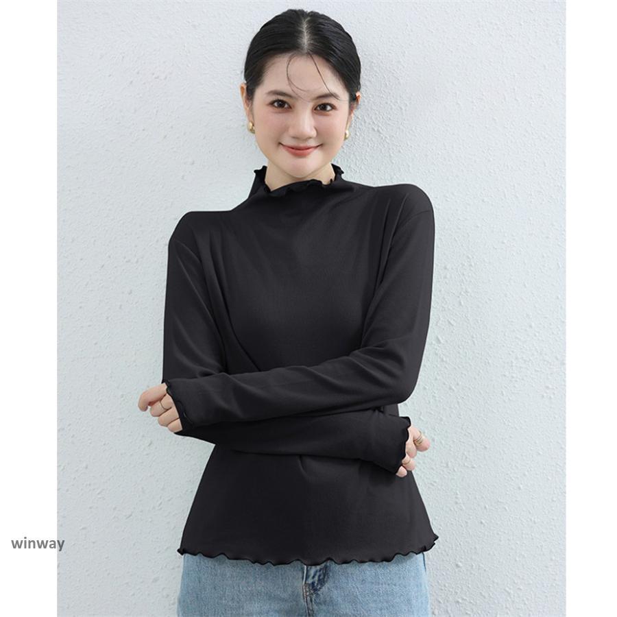 カットソー レディース 裏起毛 秋冬 トップス 長袖 シースルー ハイネック 発熱 重ね着 インナー ロングtシャツ 重ね着 かわいい 暖かい