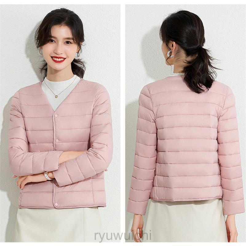 インナーダウン ダウンコート レディース ライトダウン 2way ダウンジャケット インナー ノーカラー 冬 コート Vネック 軽量 無地 あった