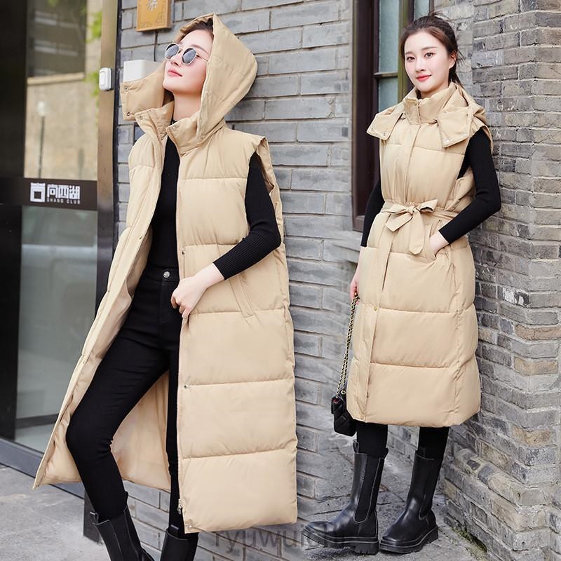 中綿ベスト レディース ダウンベスト ロング丈ベスト 防寒ベスト フード付き ノースリーブ アウター 防寒 無地 ジレ 前開き ゆったり 通勤 着痩せ