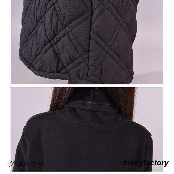 秋冬 マキシワンピース ワンピース ロングスカート チュニック ロングワンピース無地 アウター 長袖 秋 冬 Aライン 暖かい 中綿 キルティング ロング