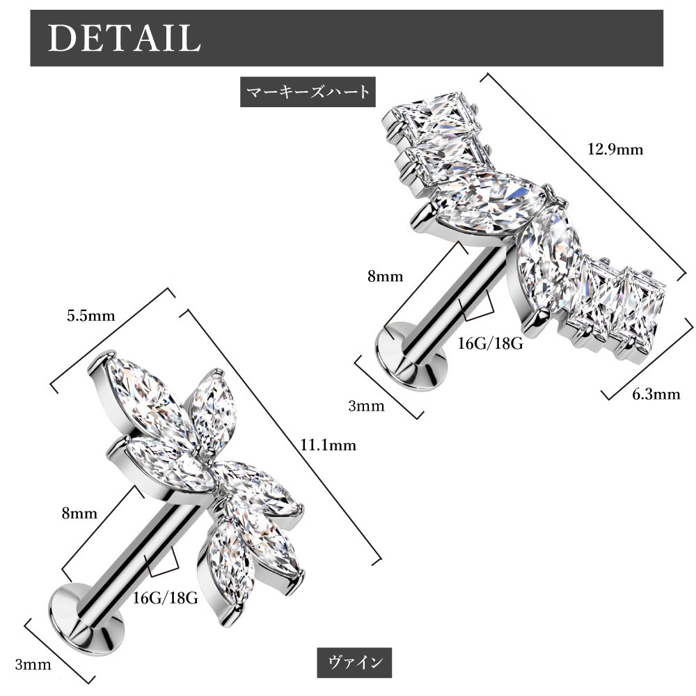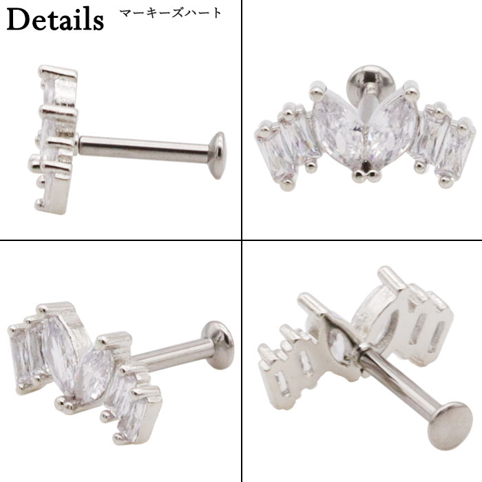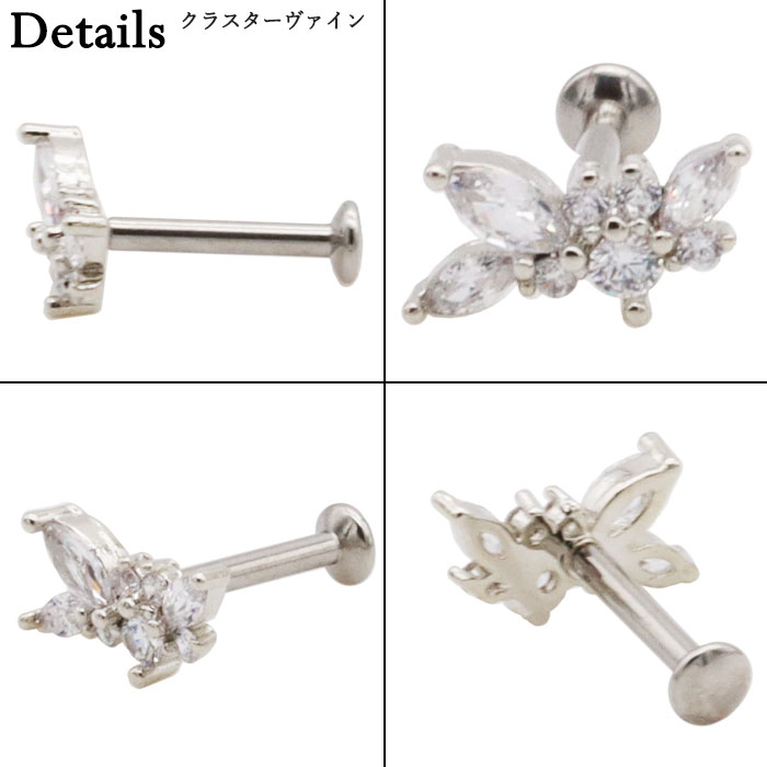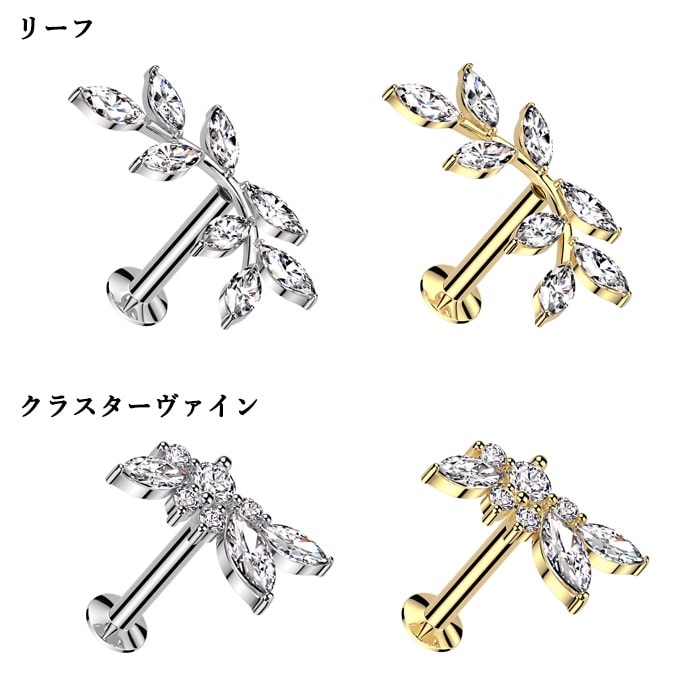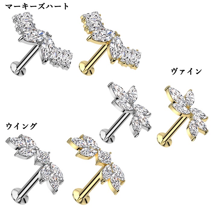 ボディピアス16G 18G ラブレットスタッド ジュエル マーキース ハート ウイング 羽根 リーフ 葉 ヴァイン 蔓 プッシュ ワンタッチ ヘリックス