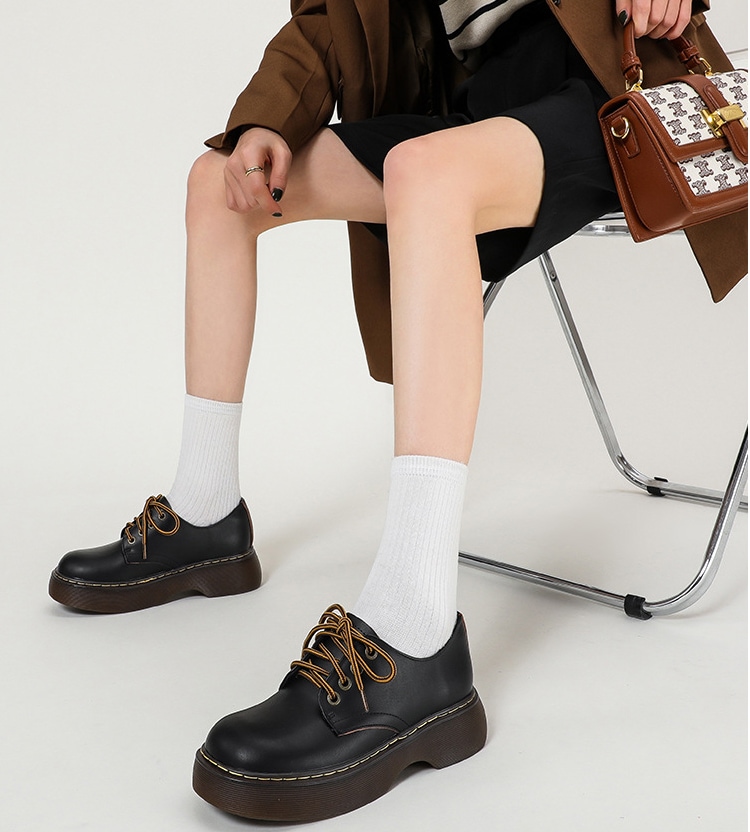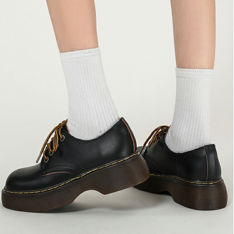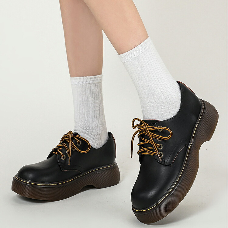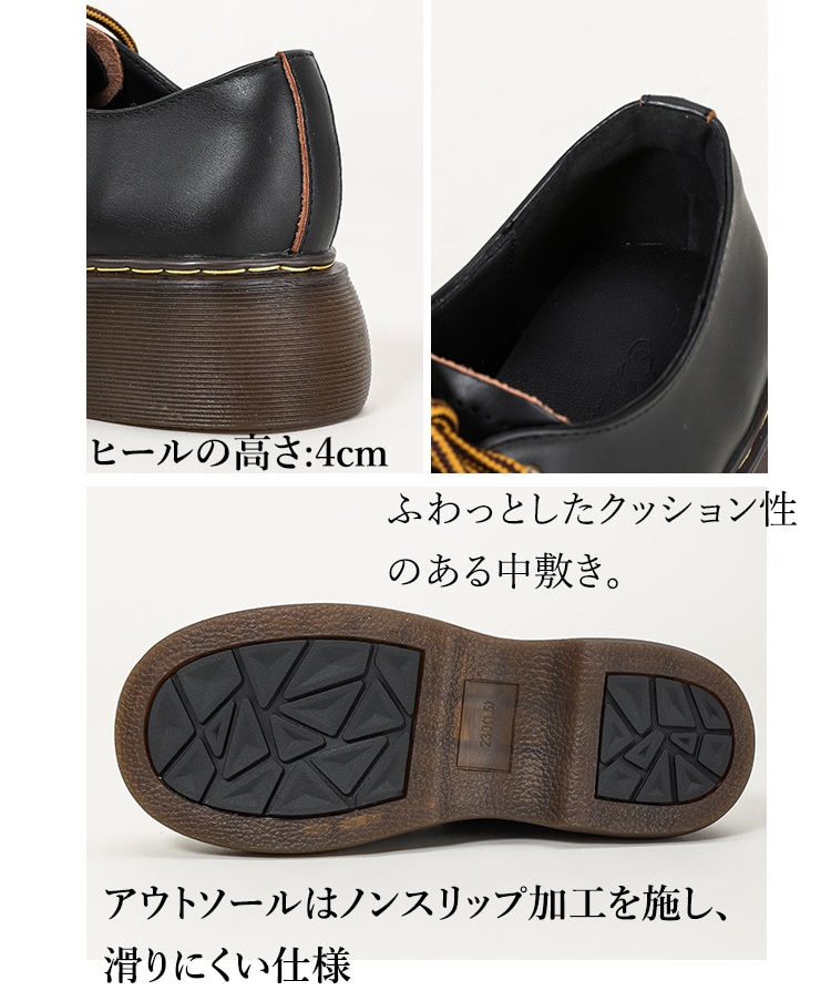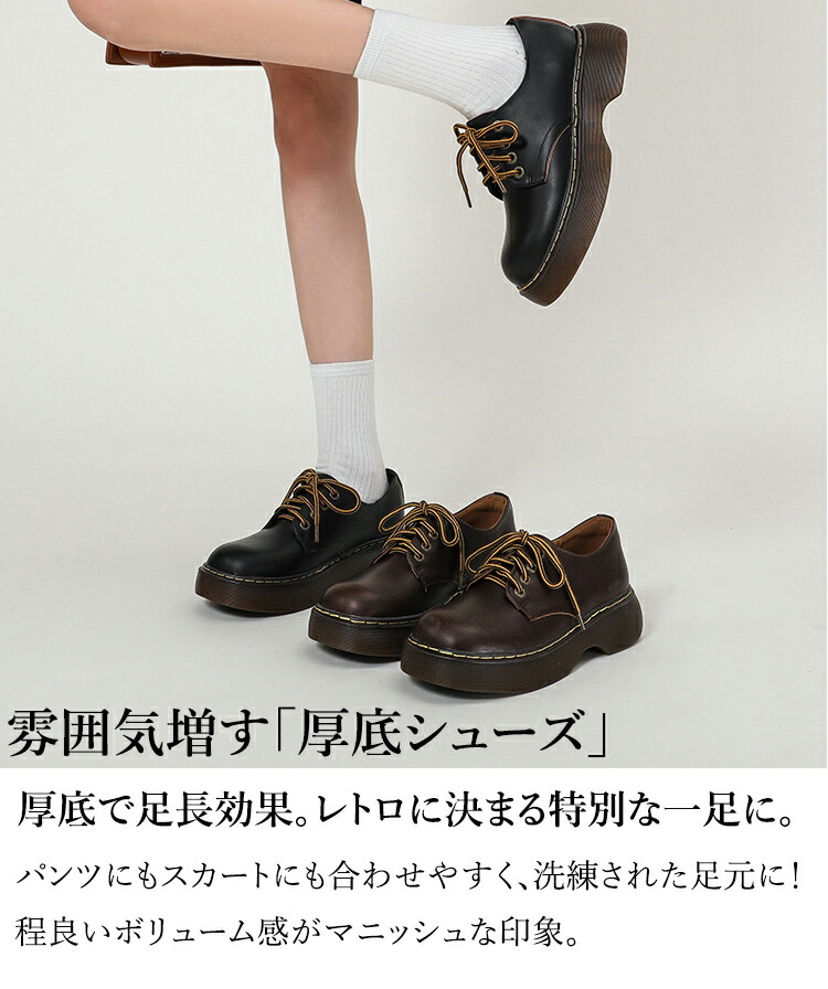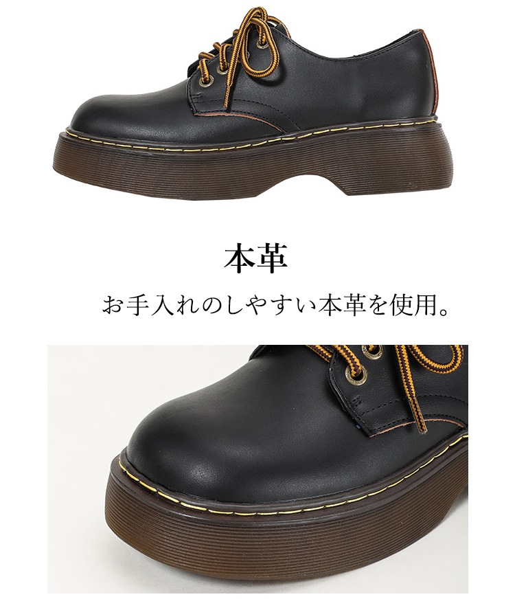 厚底 レースアップシューズ レディース 靴 本革 厚底パンプス パンプス 4センチヒール 美脚 歩きやすい ラウンドトゥ シューズ 厚底靴 マニッシュシューズ 痛くない 22.5cm 23.0cm 2