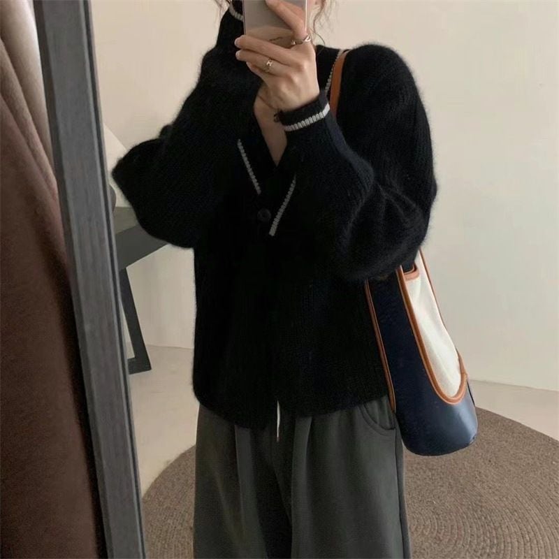 ニットカーディガン 新作セーターコート女レトロ秋冬けだるい風優しいシックなニットカーディガンv襟トップス女 百掛け 着痩せ メガ割 カーディガン