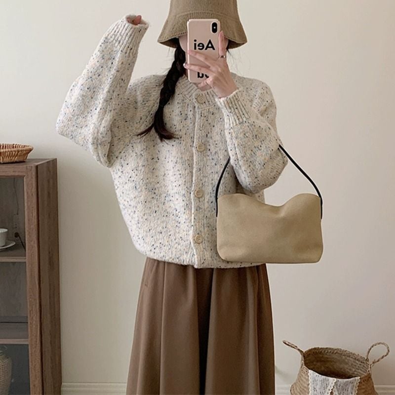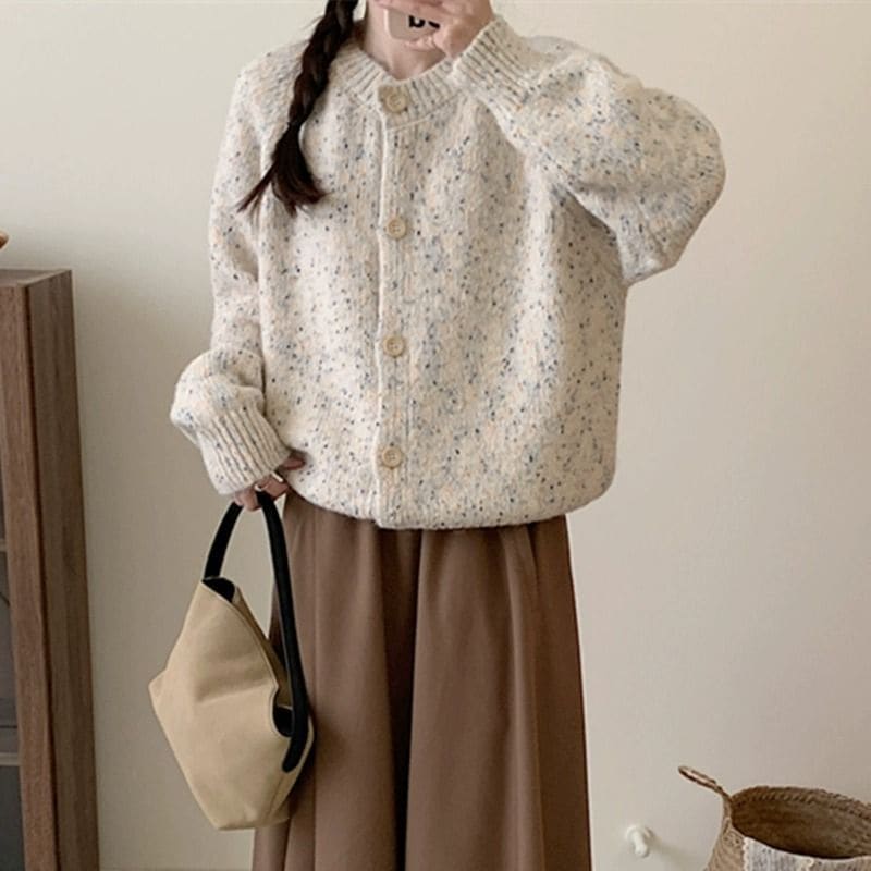 ニットカーディガン けだるい風に彩られたセーターカーディガン女2024秋新作フラワー糸モチモチ丸首ニットコート 百掛け 着痩せ メガ割 カーディガン