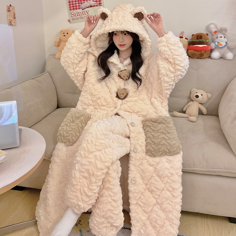 人気ルームウェア セットアップ 冬 パジャマ女性珊瑚絨毯ガウンプラス絨毯厚手保温部屋着セット 可愛い パジャマ レディース 秋冬 韓国 部屋着