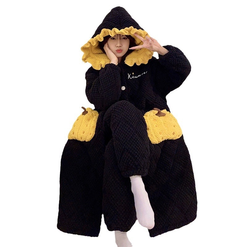 人気ルームウェア セットアップ 冬 スリーパー冬タイプ女性厚手連帽綿パジャマ保温ロングタイプ部屋着セット 可愛い パジャマ レディース 秋冬 韓国 部屋着