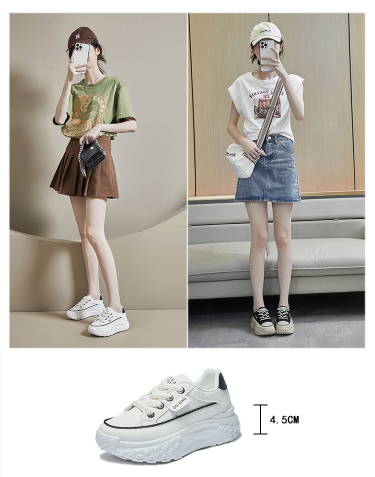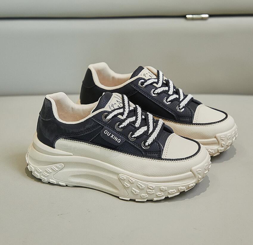 [4色] 2024 秋 可愛い スニーカー 厚底 通学 学生 脚長効果 美脚見え レディース シューズ 靴 シンプル カジュアル 痛くない靴 4.5cm