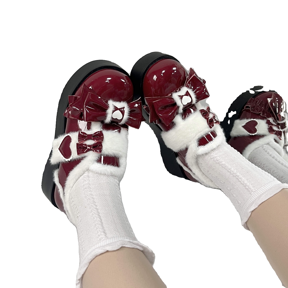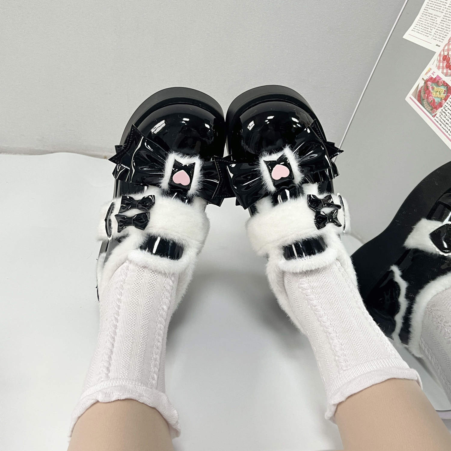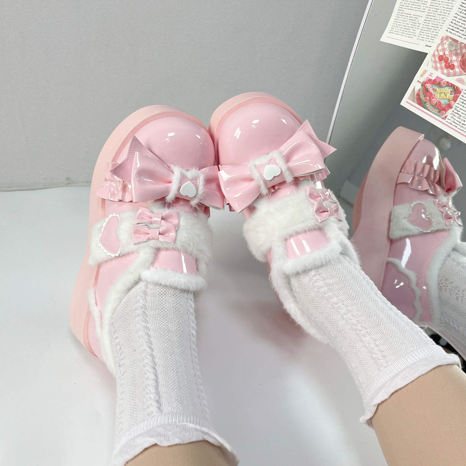 スニーカー 可愛いロリータ靴女冬のギャザー日系厚底丸首優しい女の子の革靴jk靴ロリータ靴 メガ割 スポーツ