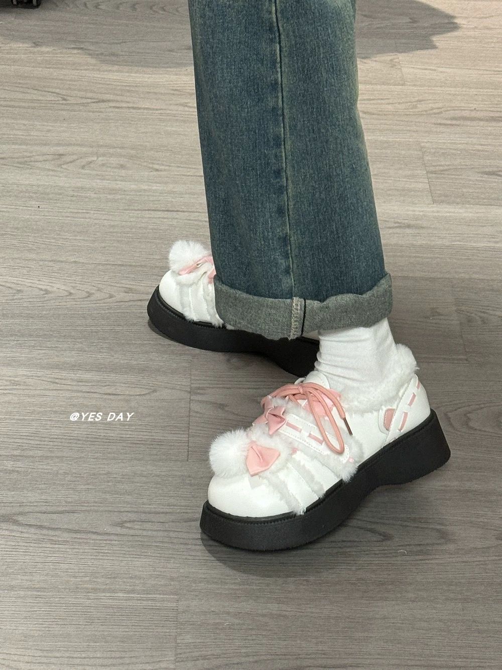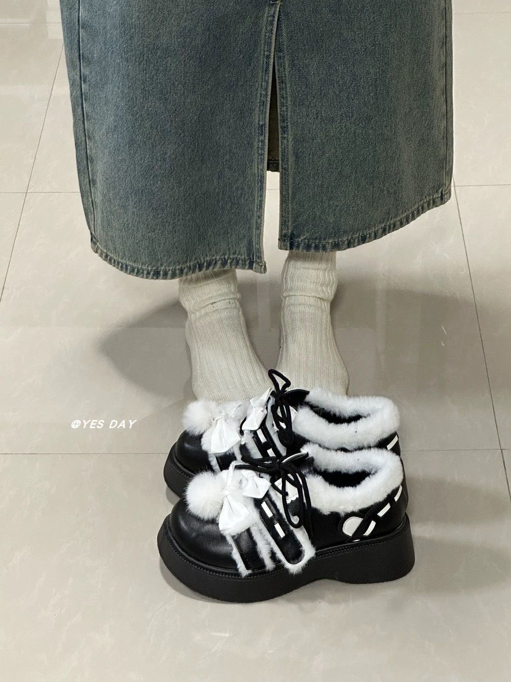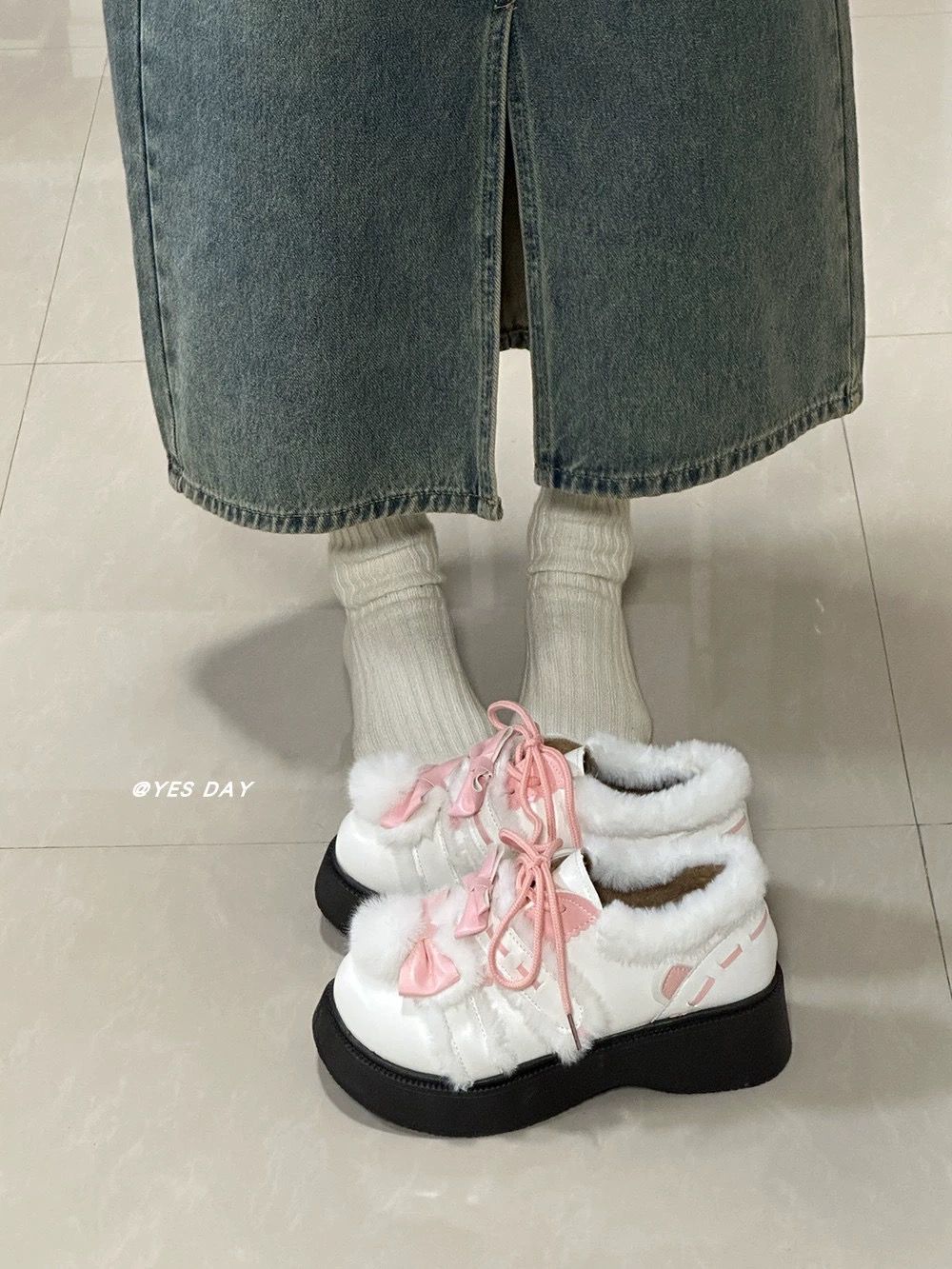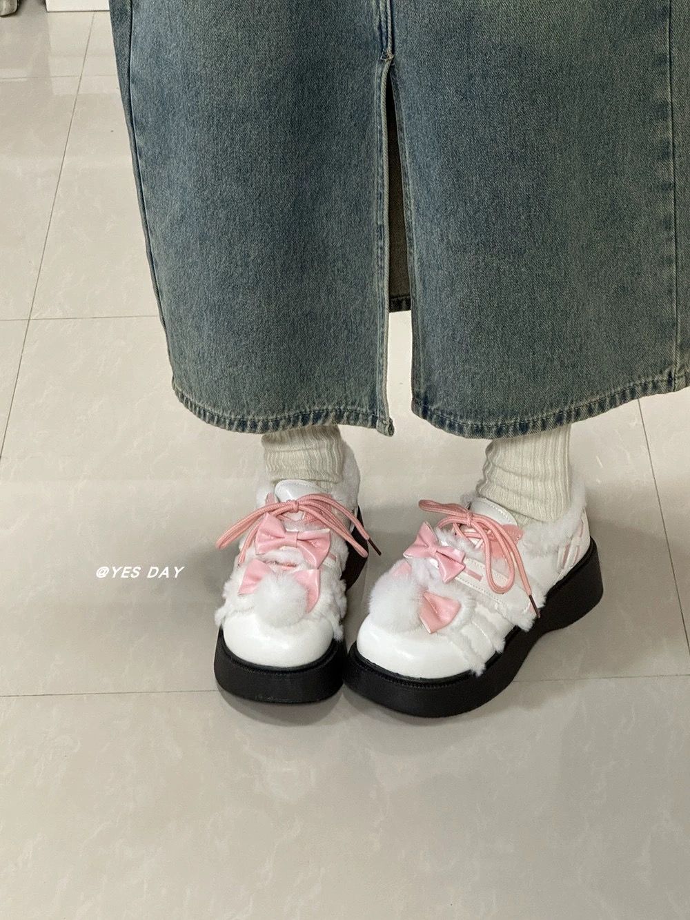 スニーカー 日系jkにスカート優しい女の子丸首ロリータ学生革靴女2023冬新作ギャザー綿入れ靴 メガ割 スポーツ