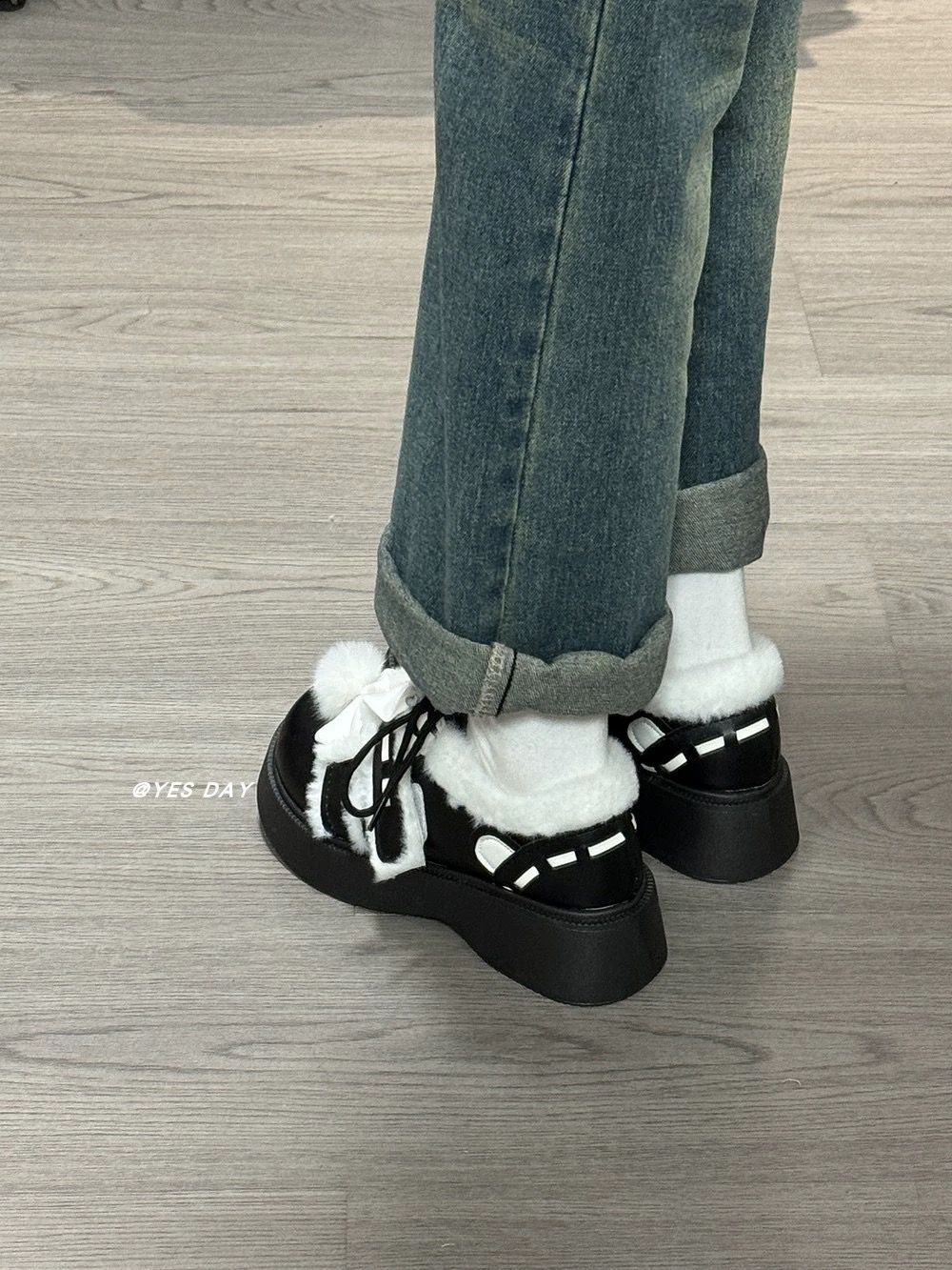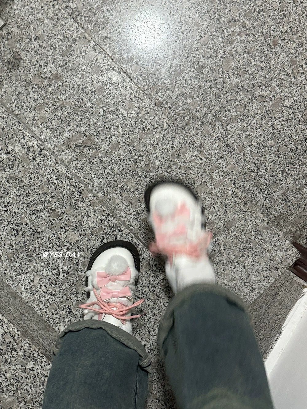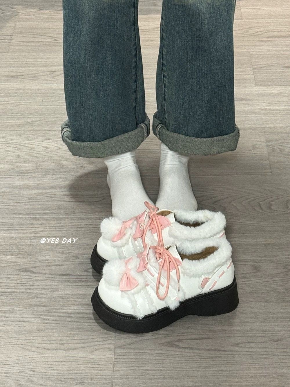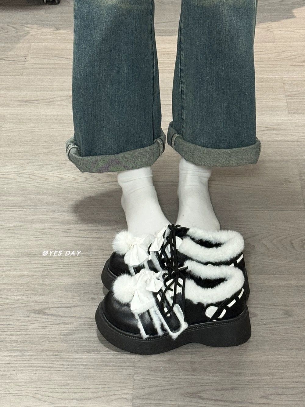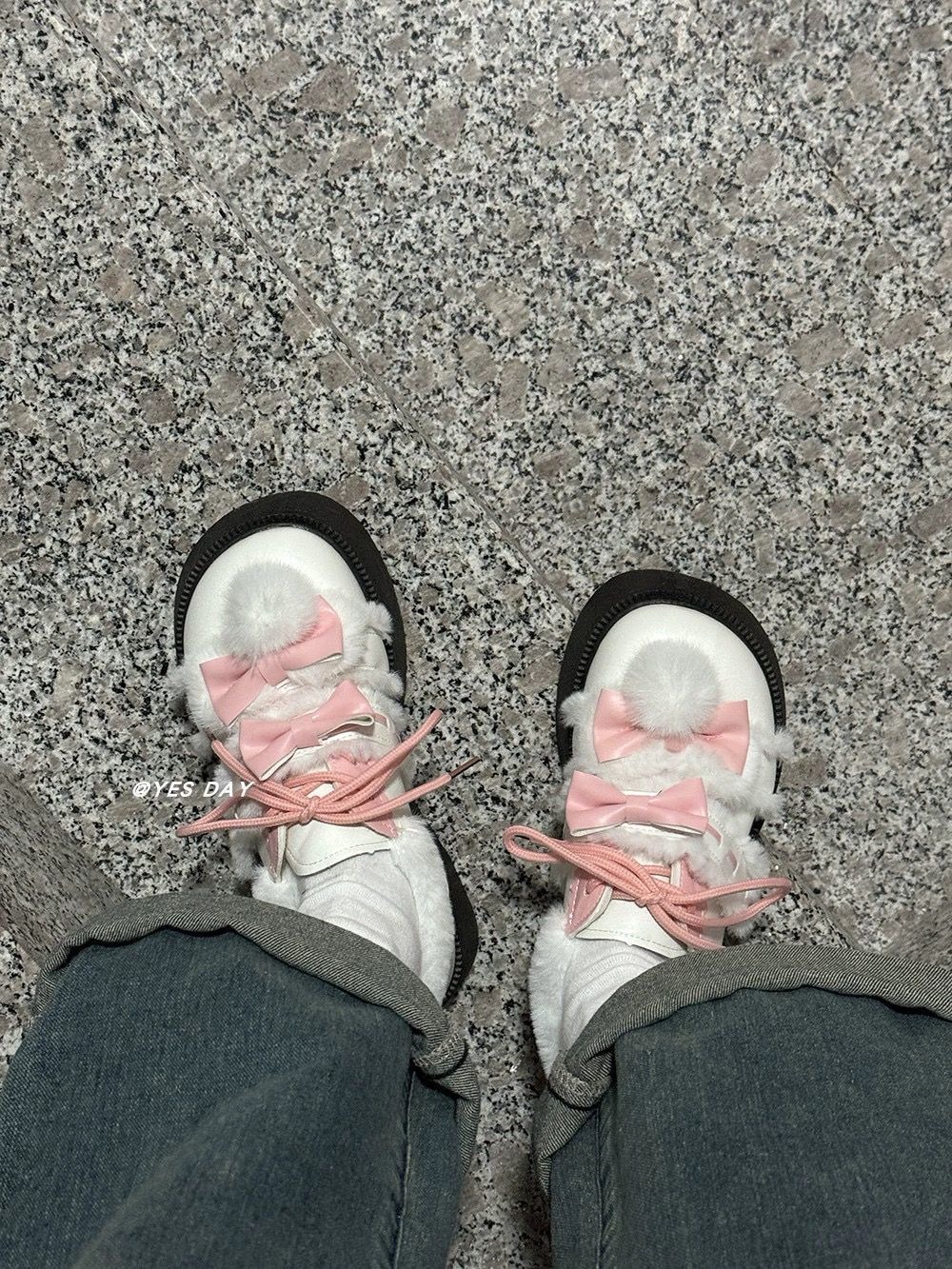 スニーカー 日系jkにスカート優しい女の子丸首ロリータ学生革靴女2023冬新作ギャザー綿入れ靴 メガ割 スポーツ