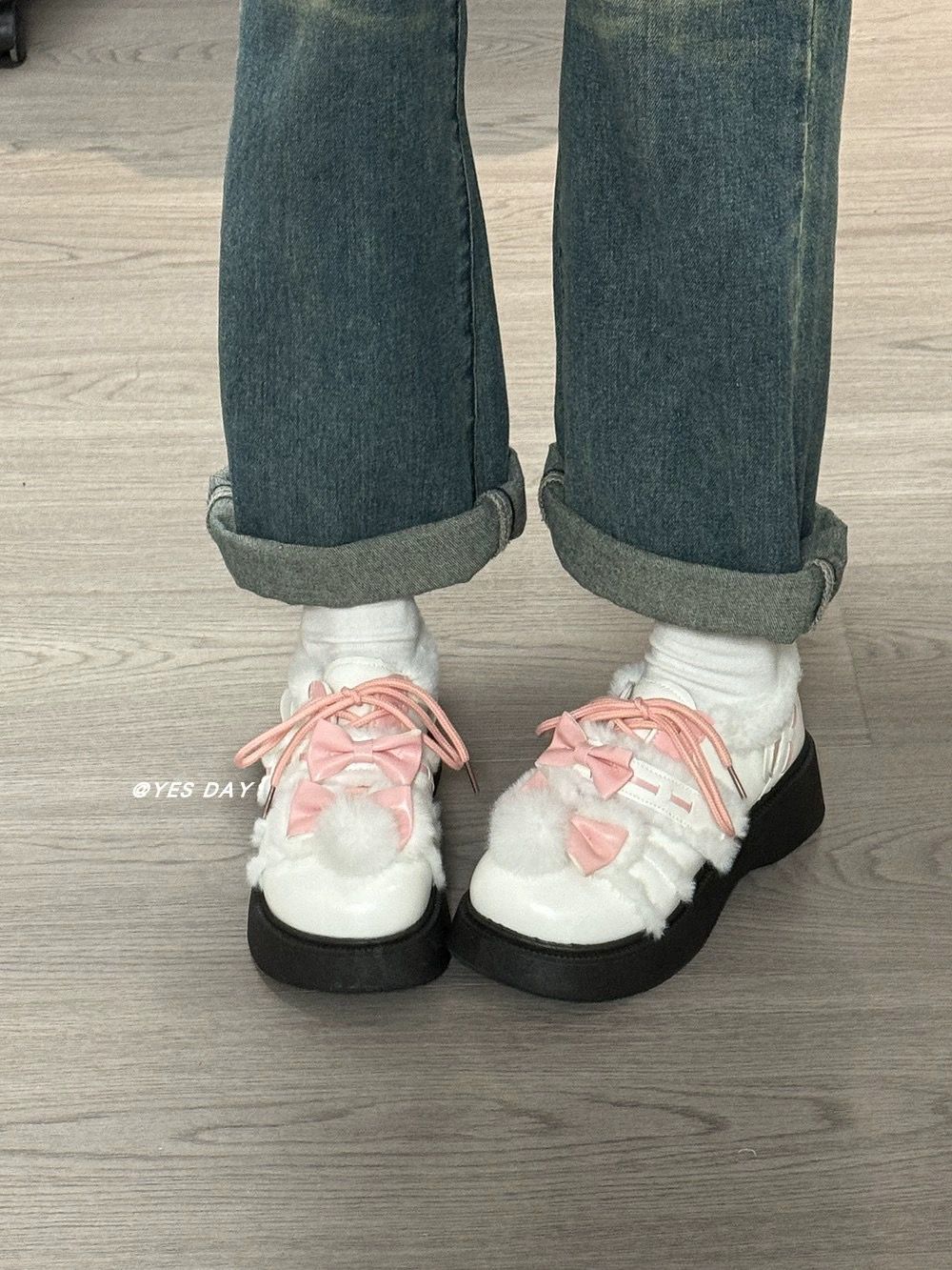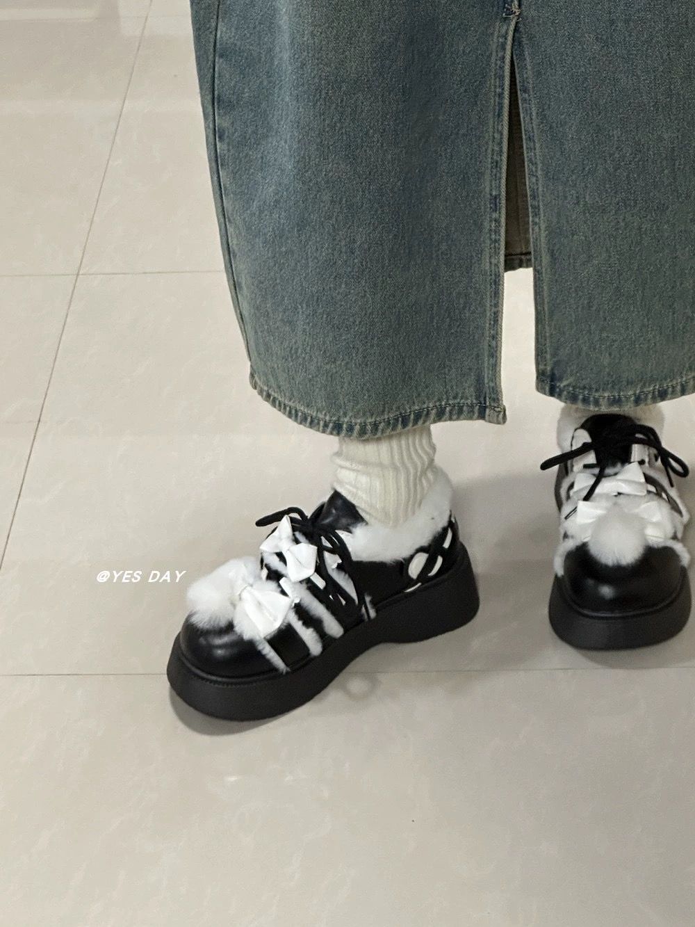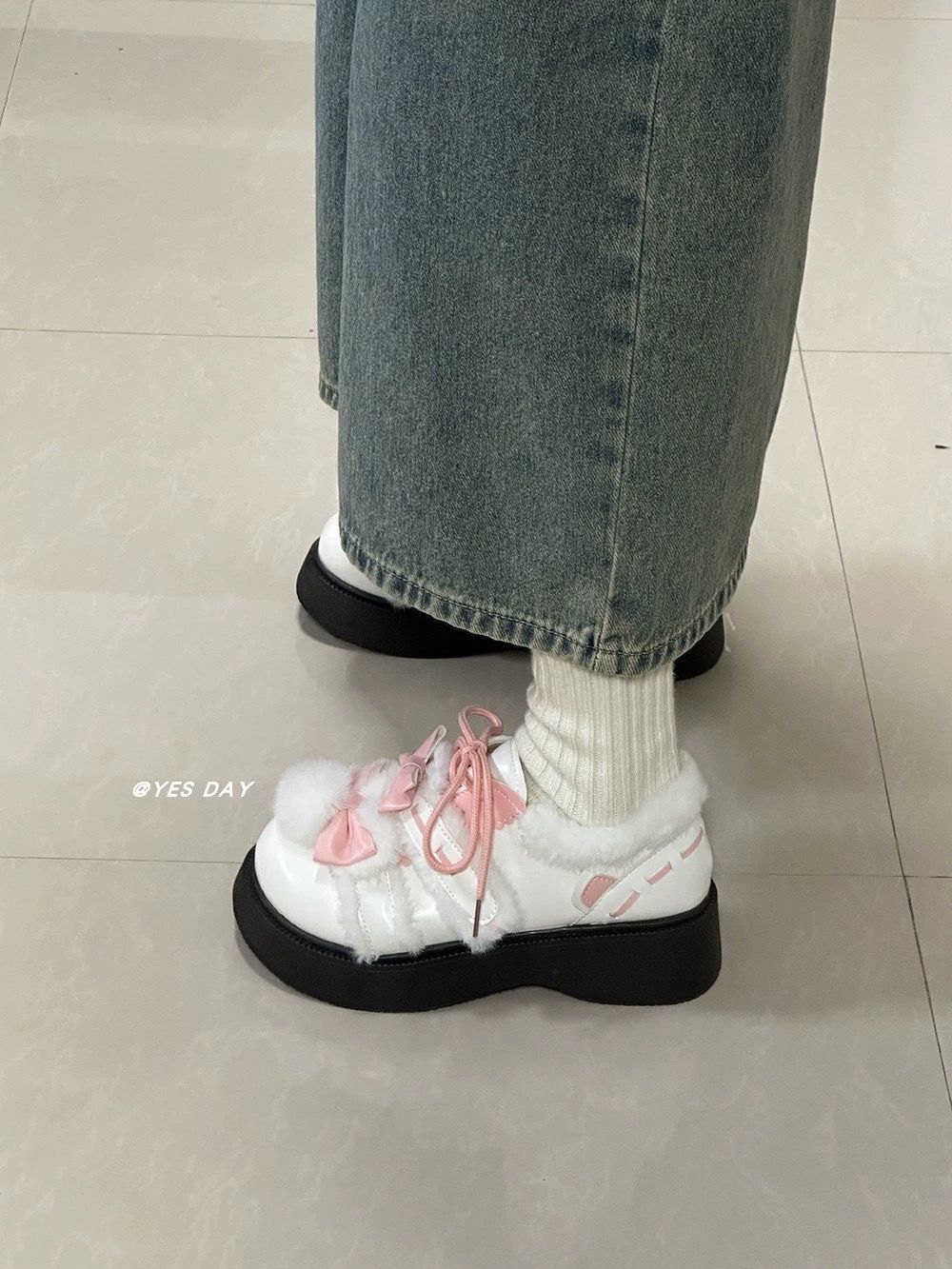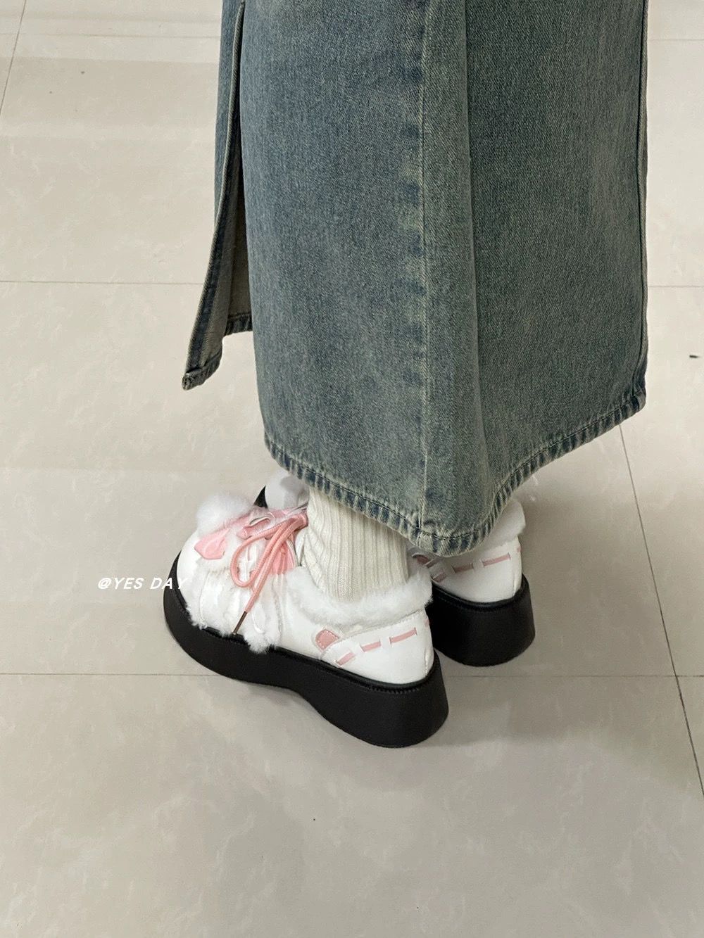 スニーカー 日系jkにスカート優しい女の子丸首ロリータ学生革靴女2023冬新作ギャザー綿入れ靴 メガ割 スポーツ