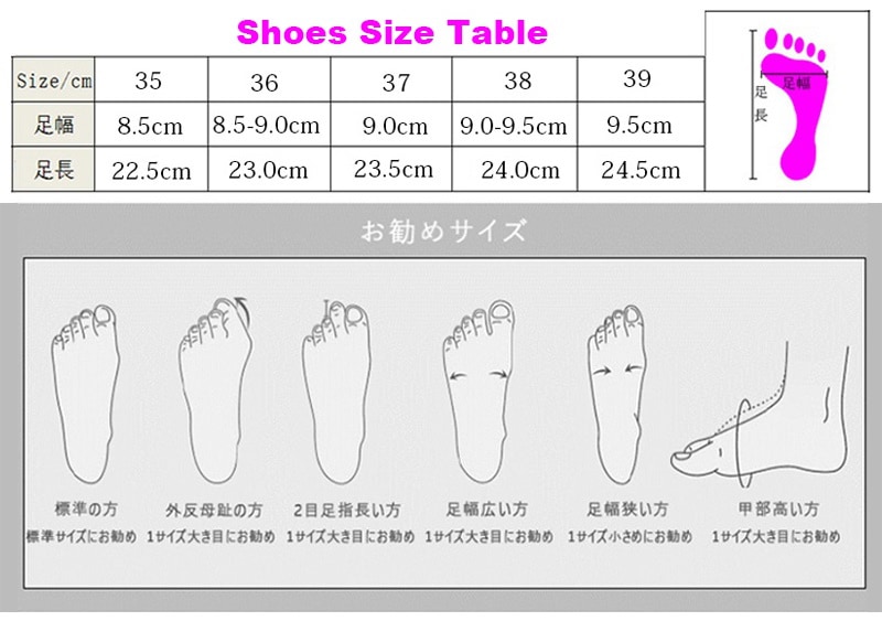 Size: 35(22.5) 36(23.0) 37(23.5) 38(24.0) 39(24.5) 40(25.0)