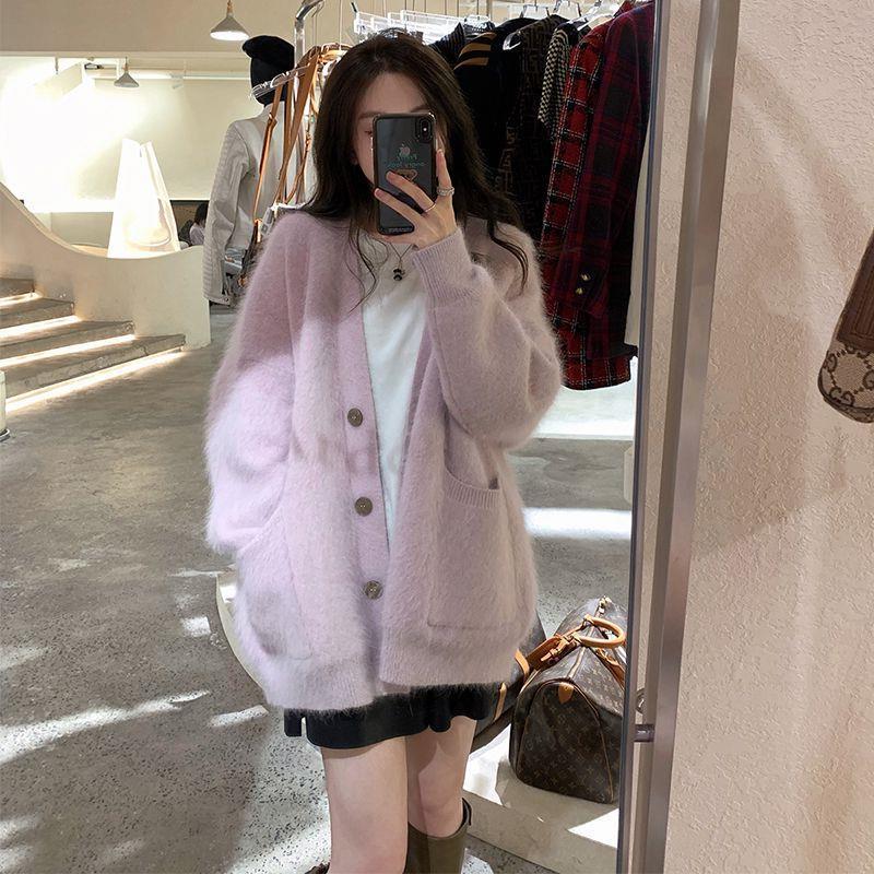2024秋冬新作ミンク毛カーディガン 気質百掛け 通勤 トップス 着痩せ 大きめサイズ ゆったり おしゃれ 防寒カジュア 保温アウター レディース