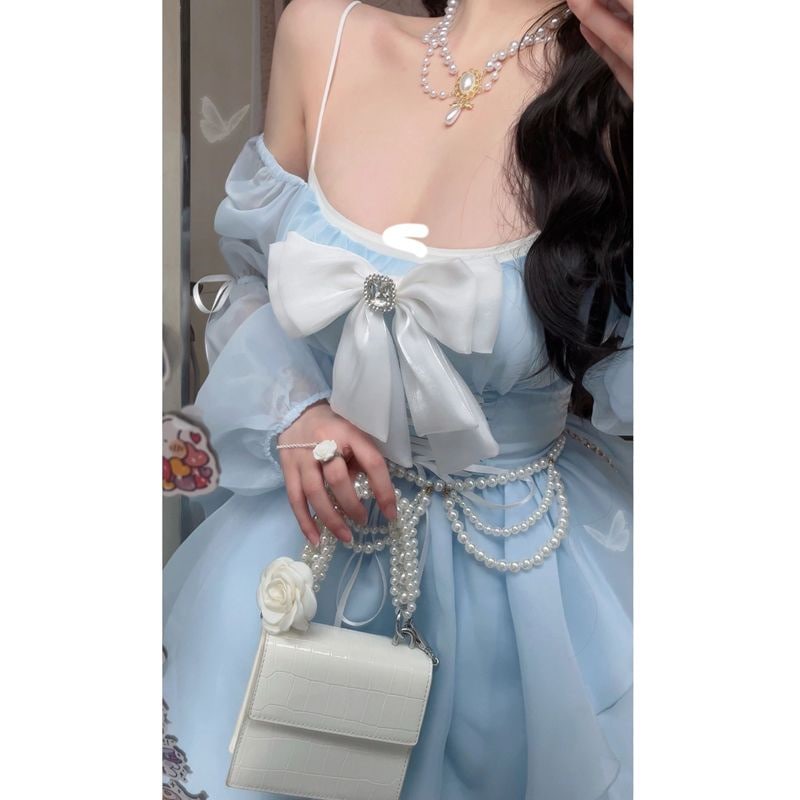 ロリータ コスプレ 2023新作 夏 ロリータ ワンピース ワンショルダー ポンポンスカート ブルーサンタコスプレ コスチューム