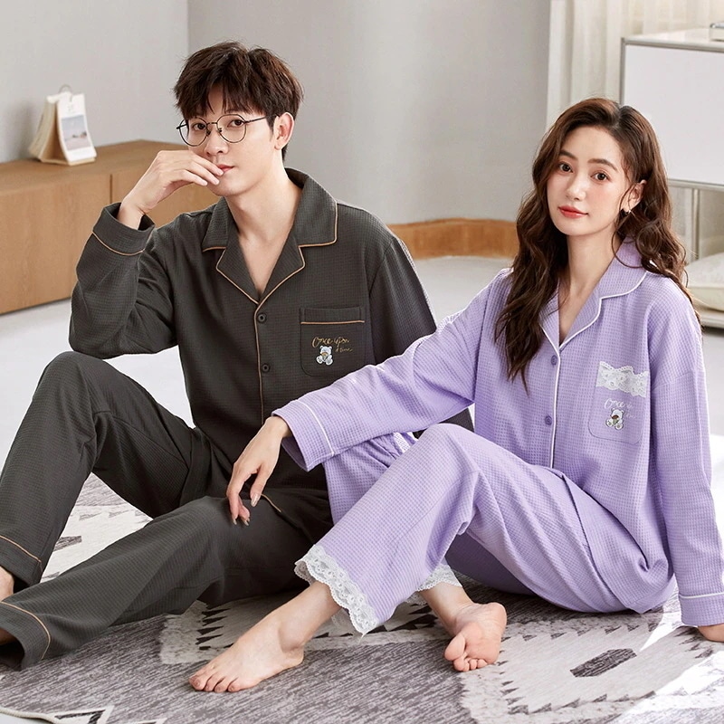 パジャマ カップル 上下セット 春秋冬 前開き 長袖 綿 大きいサイズ 寝巻き ルームウェア 部屋着 お揃い レディース メンズ 単品売り パジャマ