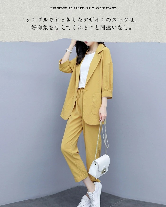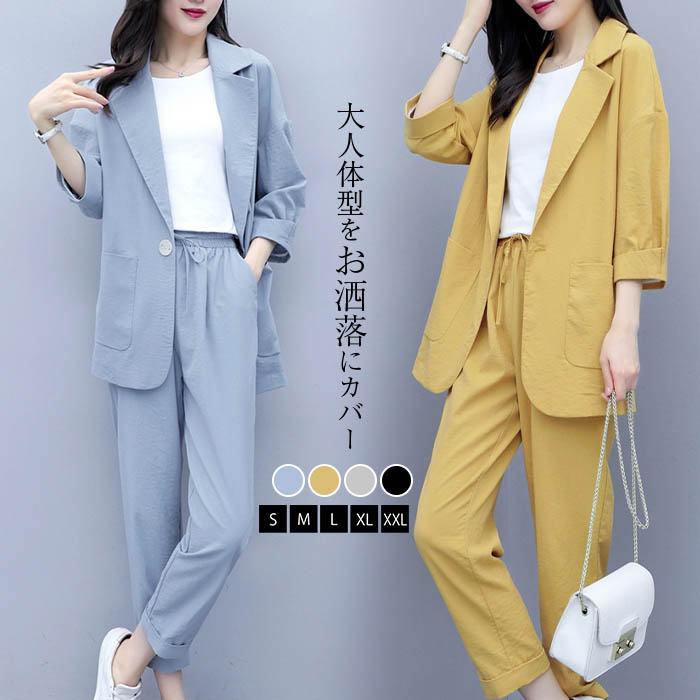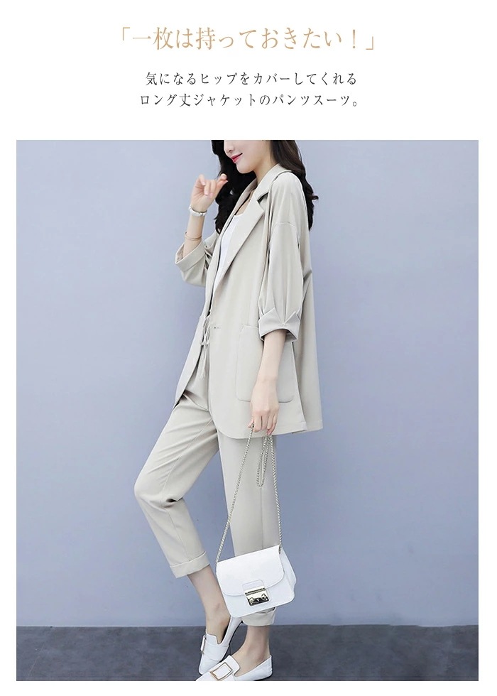スーツ レディース セットアップ パンツドレス 上下セット パンツ ジャケット ロングパンツ 七分袖 9分丈パンツ 卒業式 入学式 入園式 卒園式 体型カバー おしゃれ 着痩せ ゆったり 大人可愛い