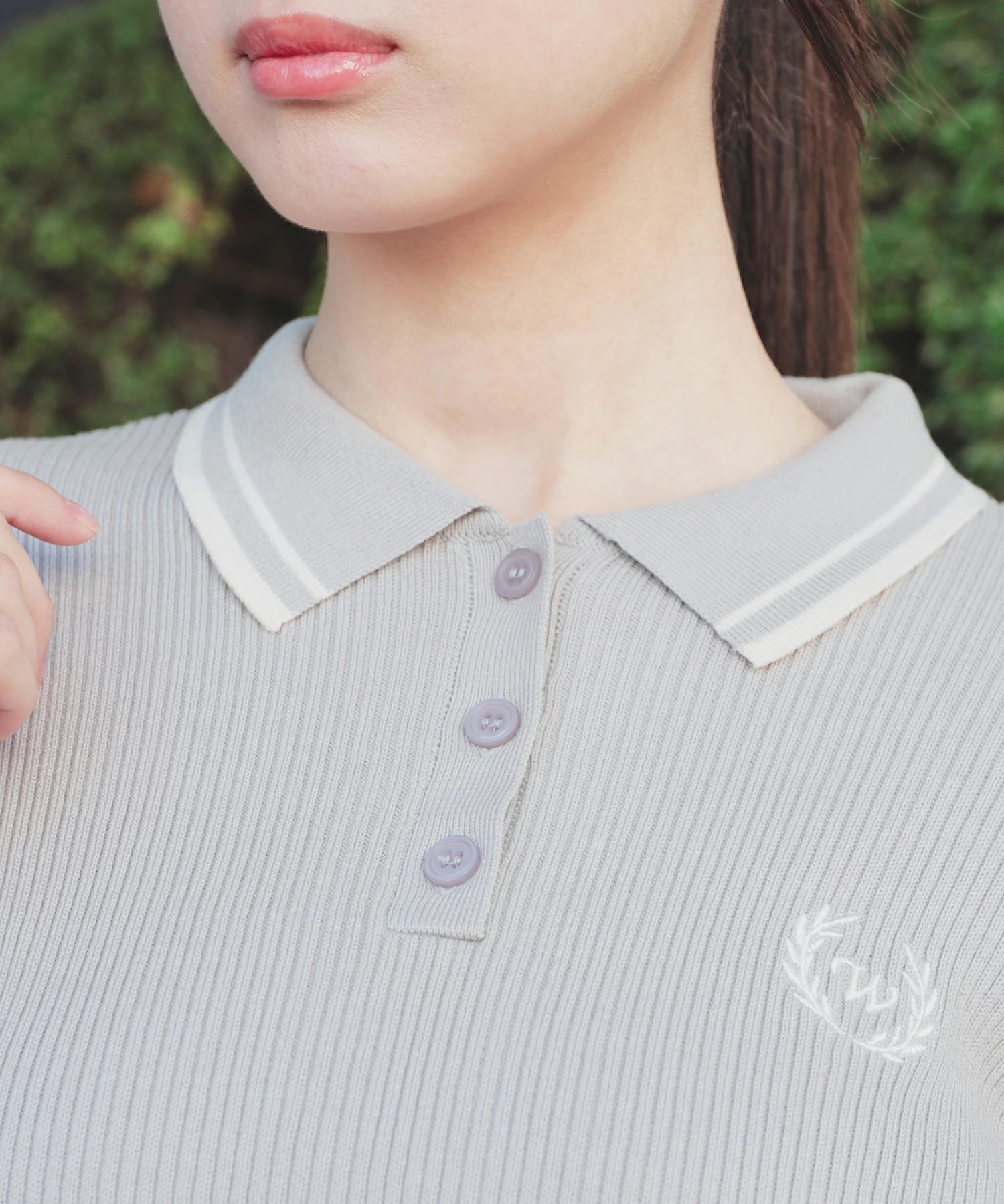 Honeys 衿付ニットトップス トップス ニット セーター 長袖 衿付 刺繍 ワンポイント ガーリー ニット