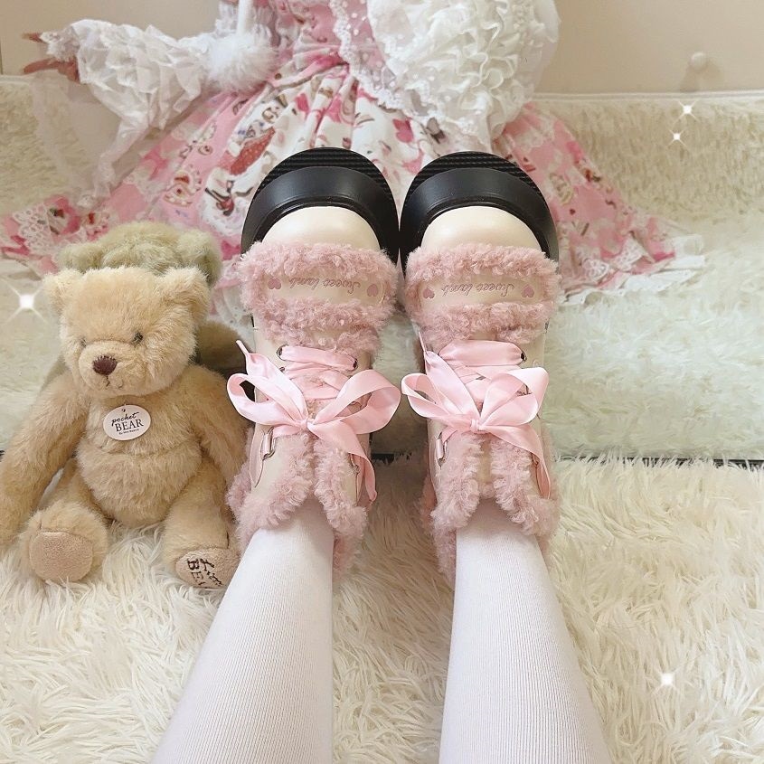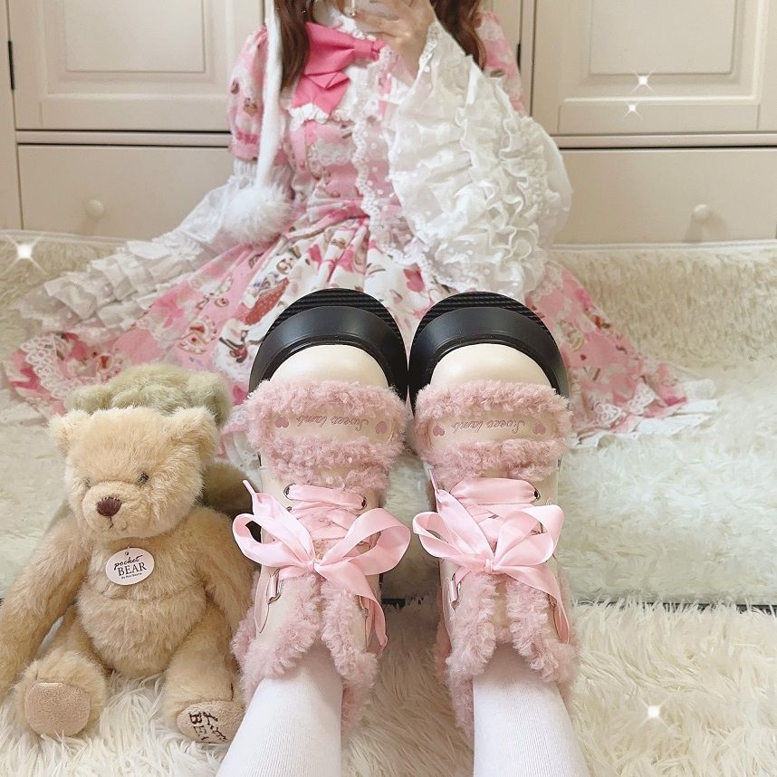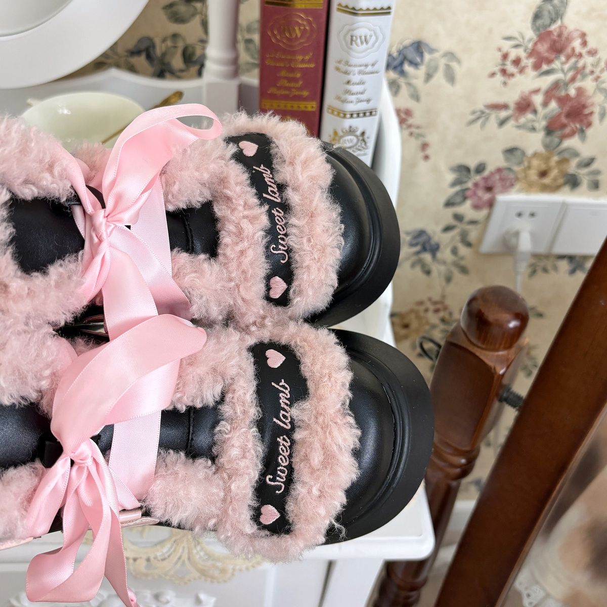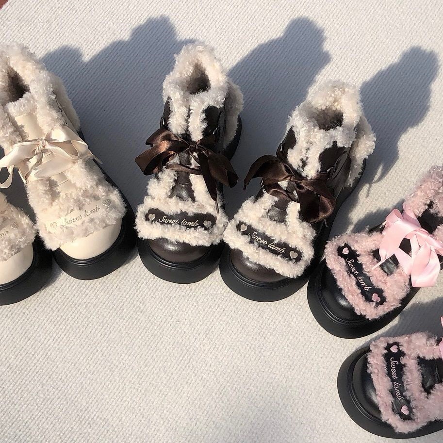 スニーカー 冬のかわいい保温靴厚底綿靴lo靴ヒツジの子羊lolita靴加絨毯マーティン靴 メガ割 スポーツ
