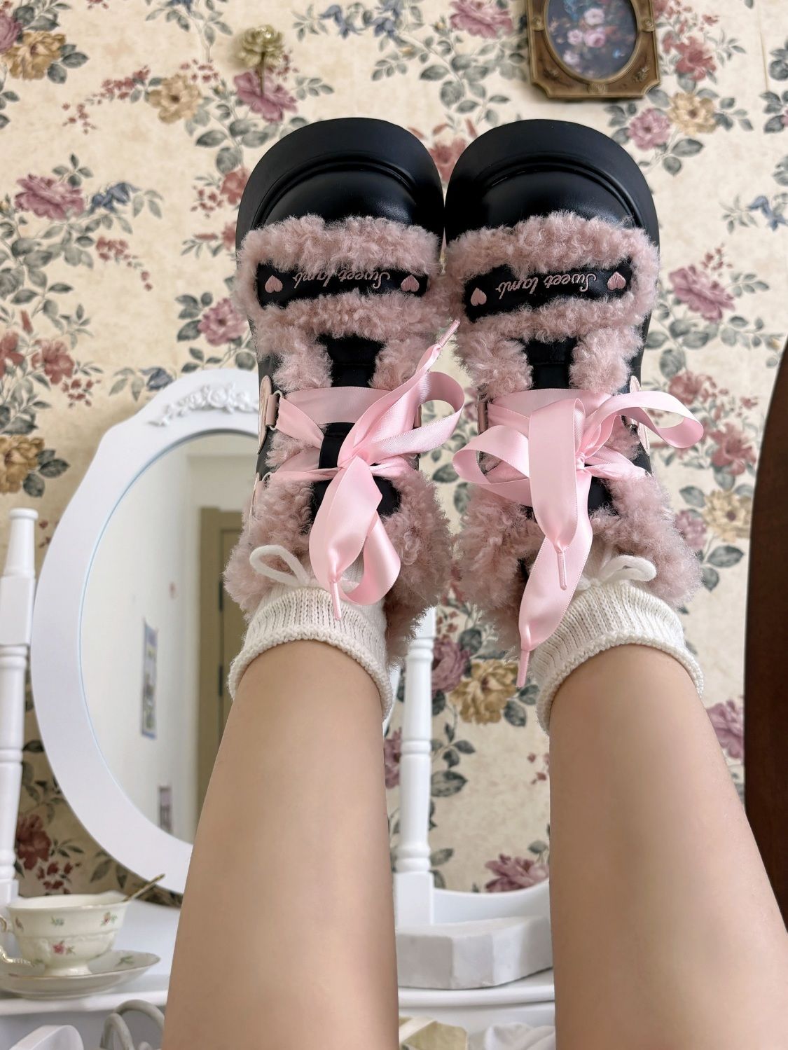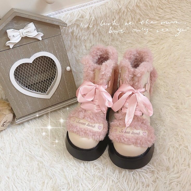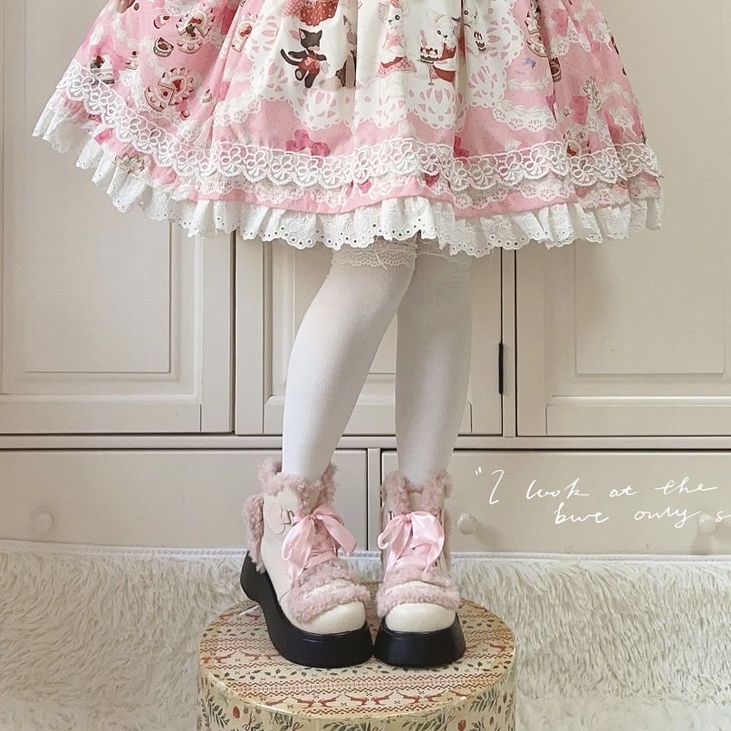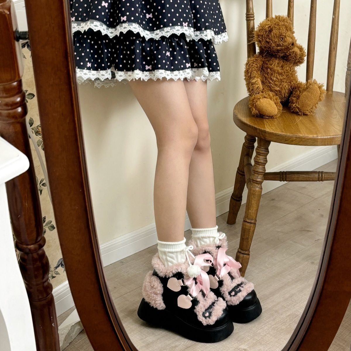 スニーカー 冬のかわいい保温靴厚底綿靴lo靴ヒツジの子羊lolita靴加絨毯マーティン靴 メガ割 スポーツ