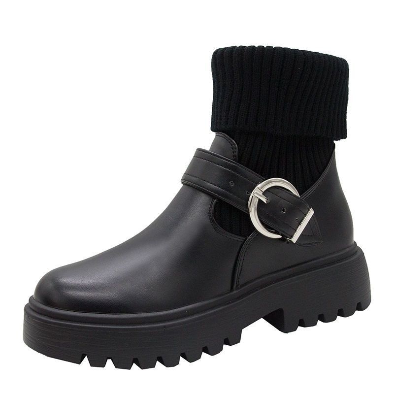 スニーカー 2025秋冬毛糸口ショートブーツ韓国版太ヒール厚底ニットショートブーツマーチンブーツ保温加絨コットンブーツ メガ割 スポーツ