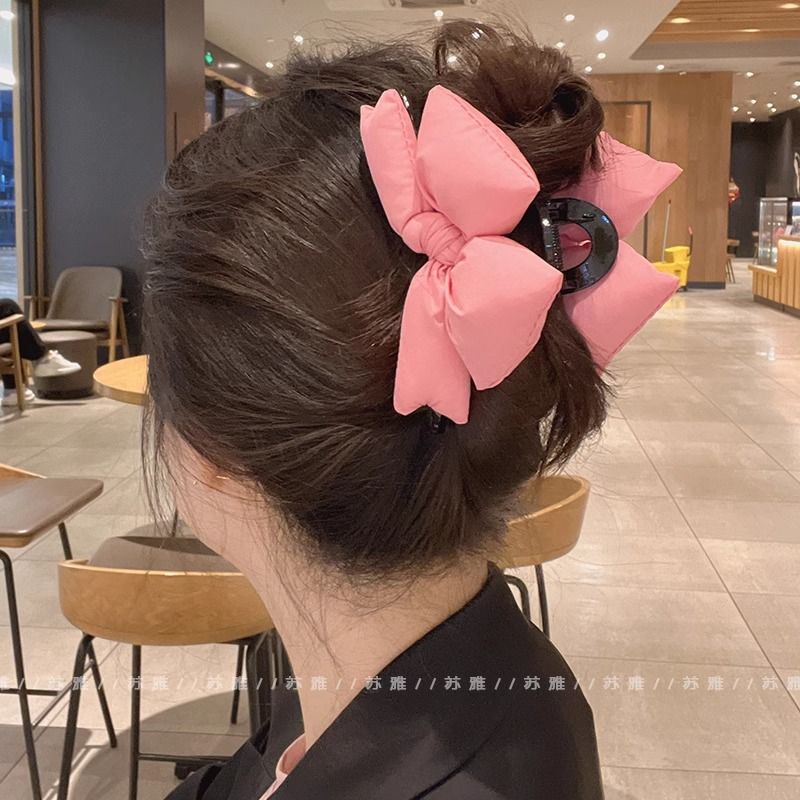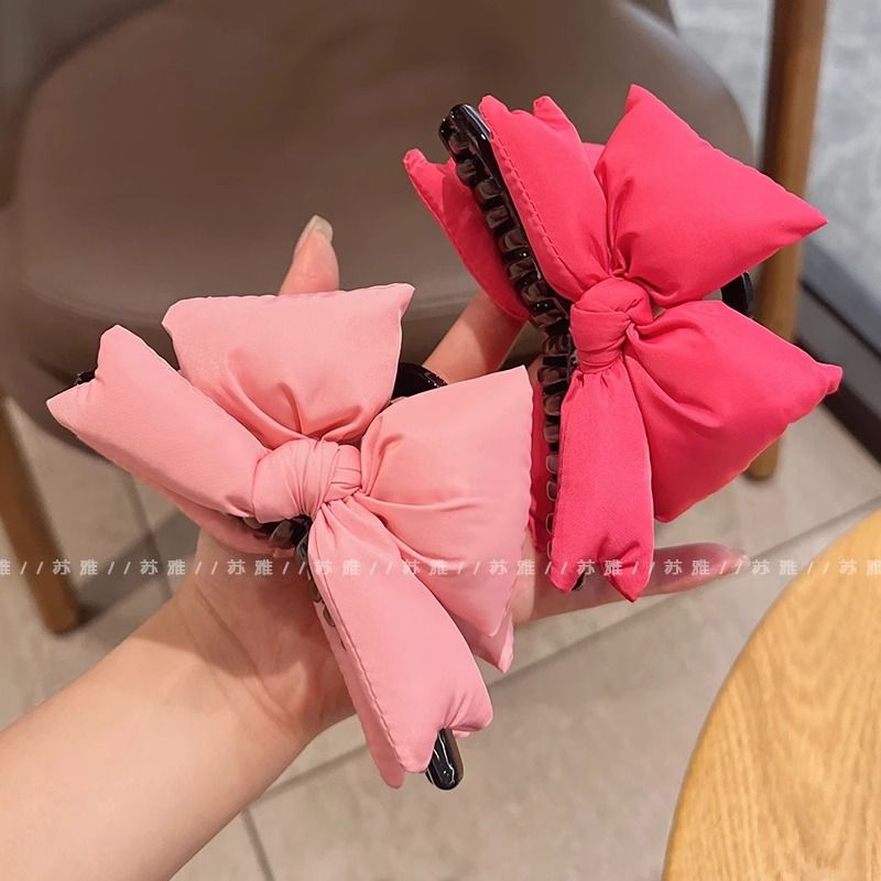 ヘアクリップ ピンクリボンスポンジつかみ髪飾り姫髪挟み女後頭部大皿髪サメ挟み髪飾り 百掛け 韓国ファッション メガ割 ヘアクリップ