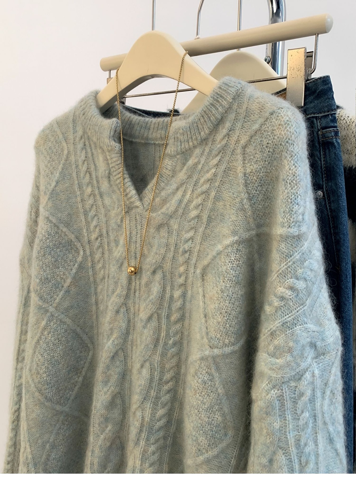 高級グレーvネックマーブルアライグマのダウンセーター女性秋冬冬厚くだるくてモチモチしたウールニット ニット