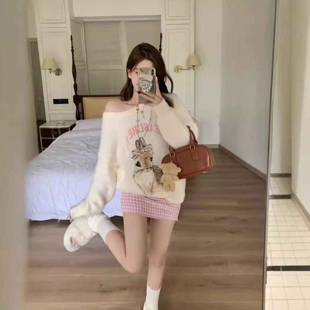 秋冬のセーターの袖の女性の柔らかいモチモチのウサギの甘いニットの上着 ニット