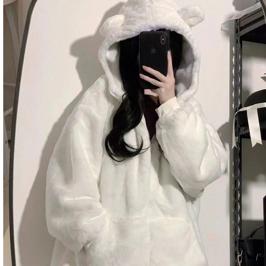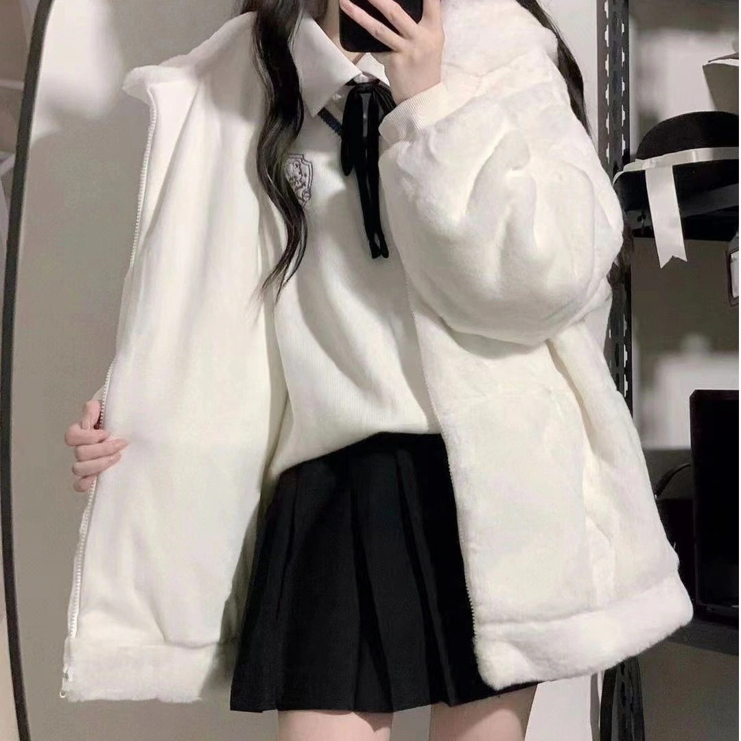 秋冬アウター ブラッシュトップス シンプル可愛いパンダボアコートパーカーカジュアルアウターレディースキャンパス風 キルティングアウター その他 アウター