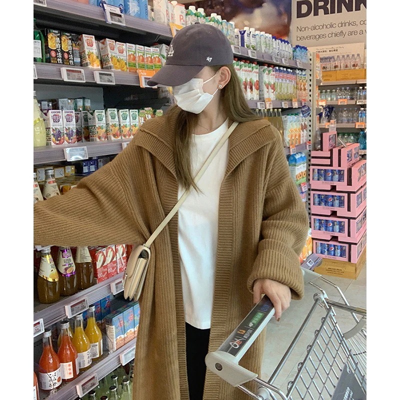 韓系レトロな開襟ミディアムコート女秋冬厚手ゆったりニットカーディガン気質だるい風大きなセーター トップス ジャケット その他 アウター