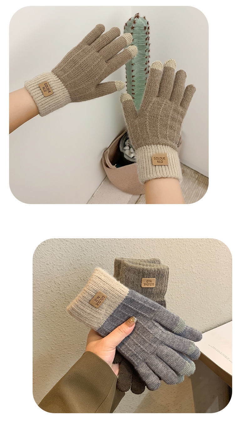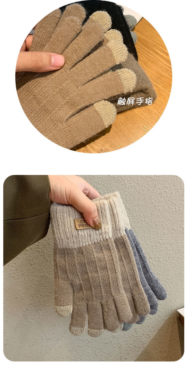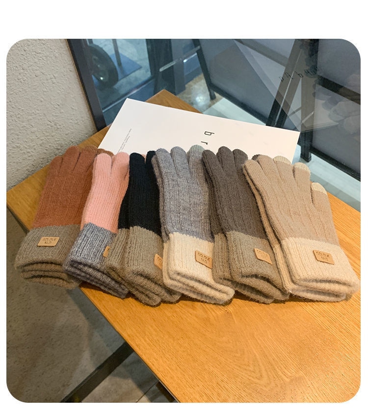 秋冬ファッション 韓国 新作 ニット 手袋 裹起毛 防寒 保温 タッチスクリーン 手袋 冬 保温 サイクリング ランニング 学生 手袋 ニット手袋