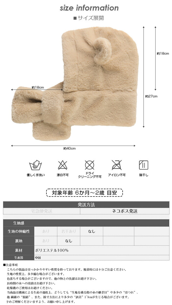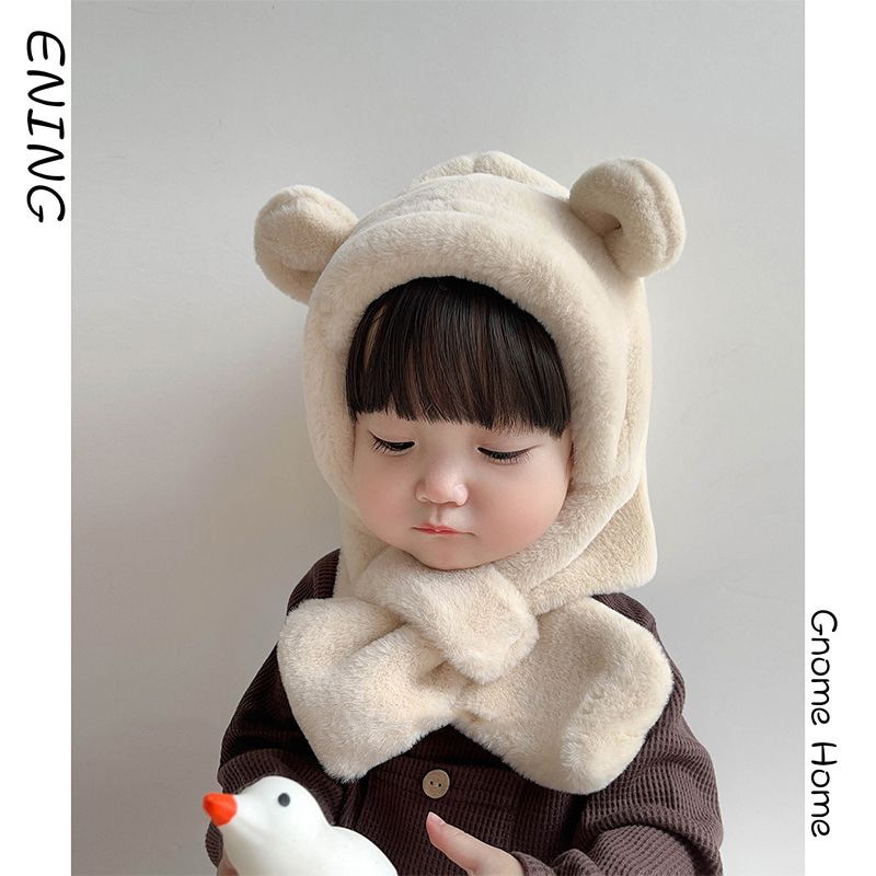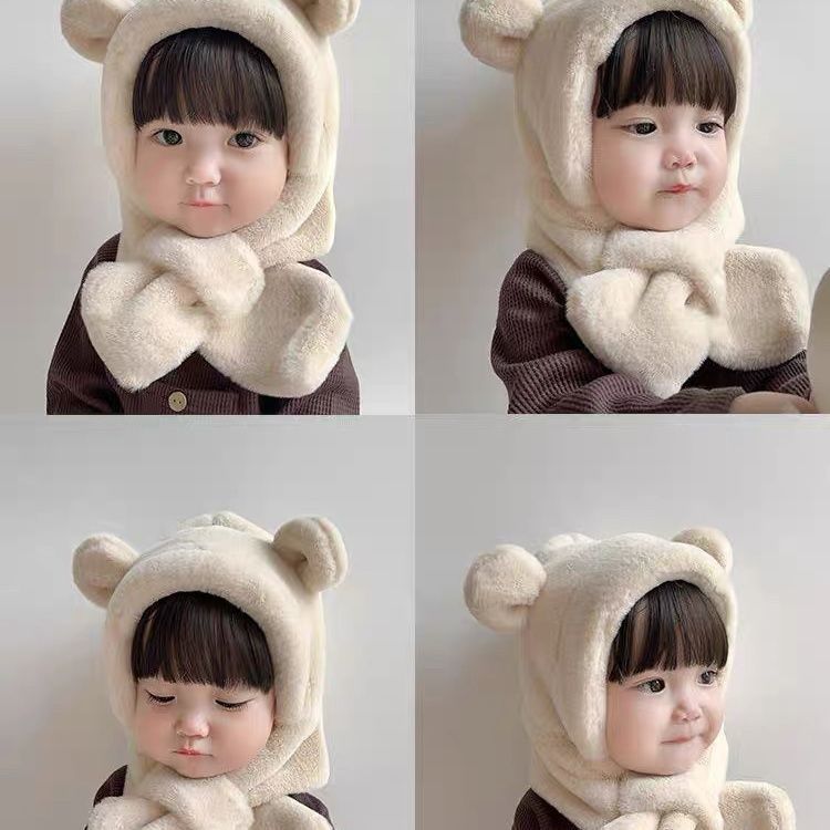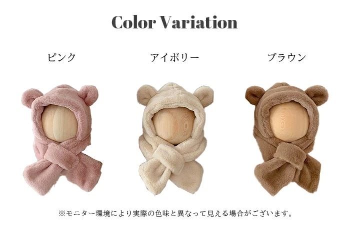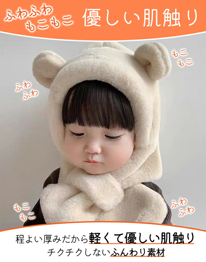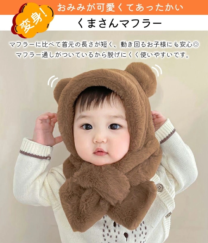 帽子 マフラー キッズ 一体 ベビー イヤーマフ フード ティペット 付き 冬 防寒 フードウォーマー 子供 耳付き 男の子 女の子 一体型 くま くま耳 ファー もこもこ 可愛い 保育園
