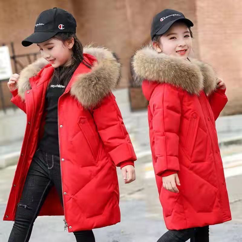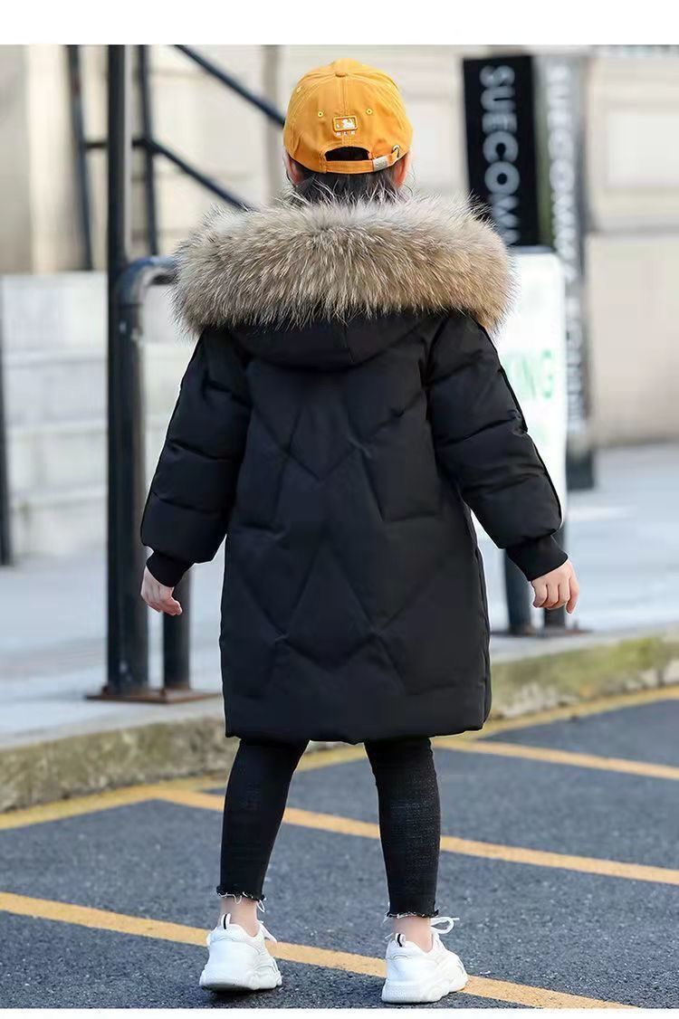 子供用中綿コート冬服ミディアム丈ダウン中綿ジャケット子供用大きいファー襟中綿服 ジャンパー コート ジャケット