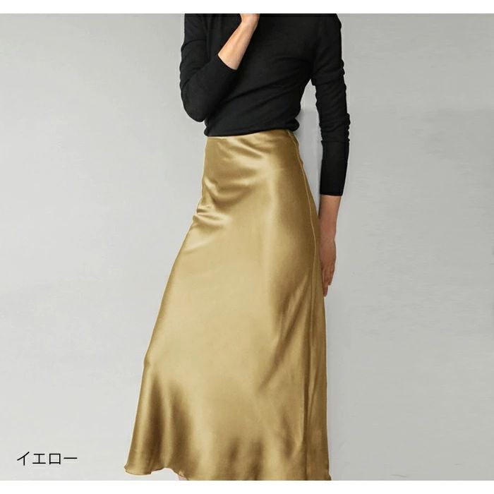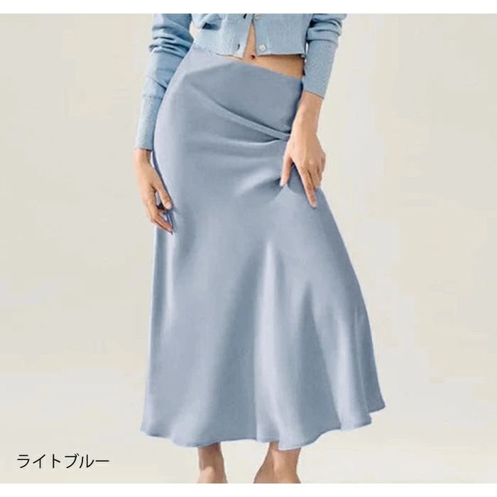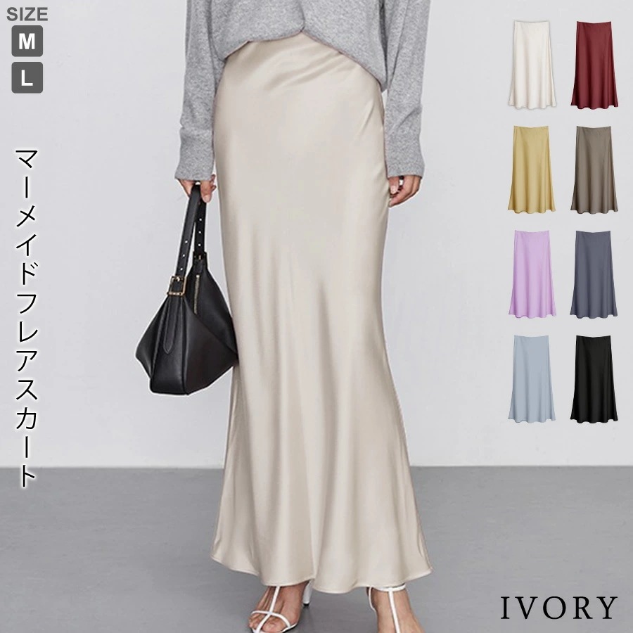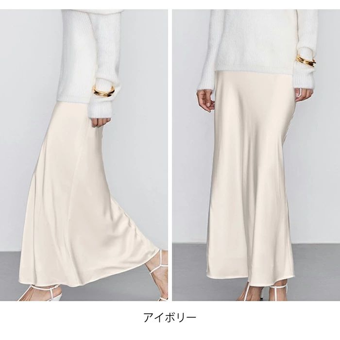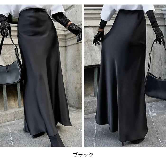 マーメイドスカート サテンスカート ロングスカート マキシ フレア マキシ タイト ロング ロング丈 マキシ丈 きれいめ 光沢感 上品 トレンド 着痩せ ウエストゴム オフィス サテンナロースカート