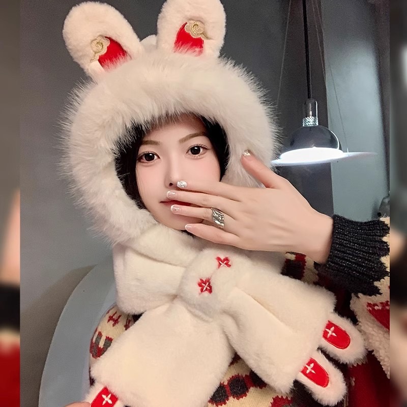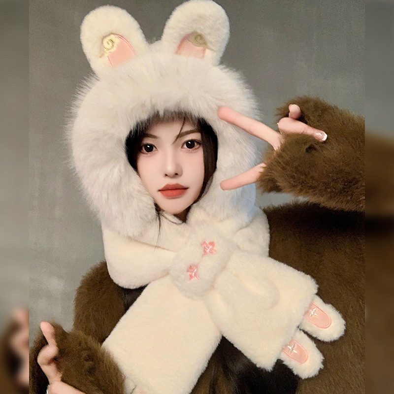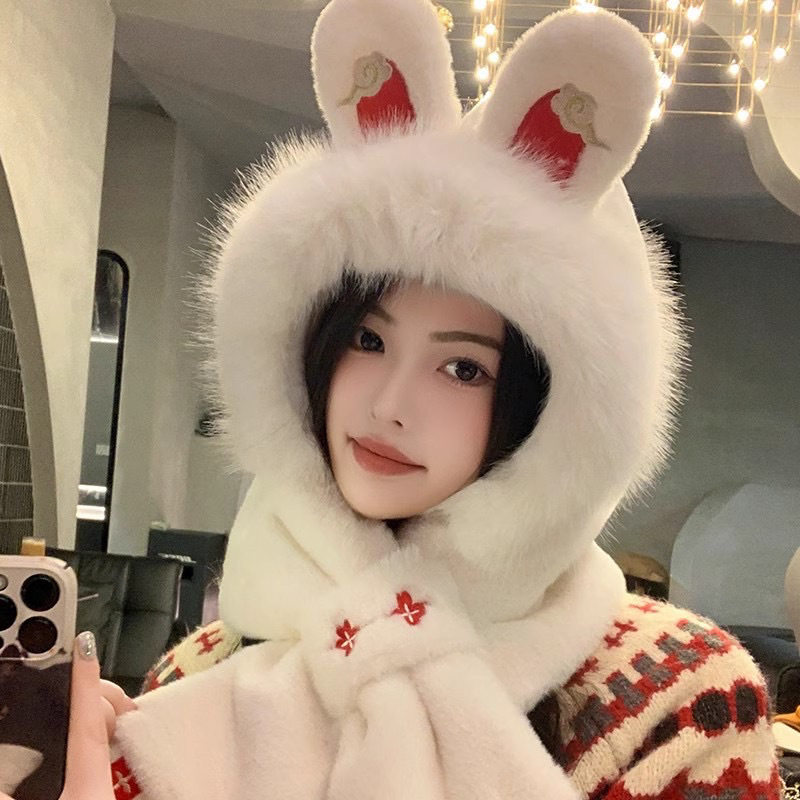 中国風のモヘア帽子とスカラフがセットになった冬用の暖かいアイテムで耳を保護し風を防ぐ连帽付きのフードが特徴です 耳あて イヤーマフラー