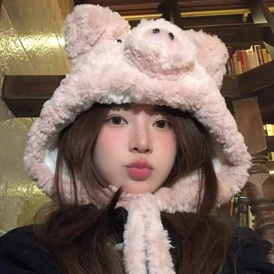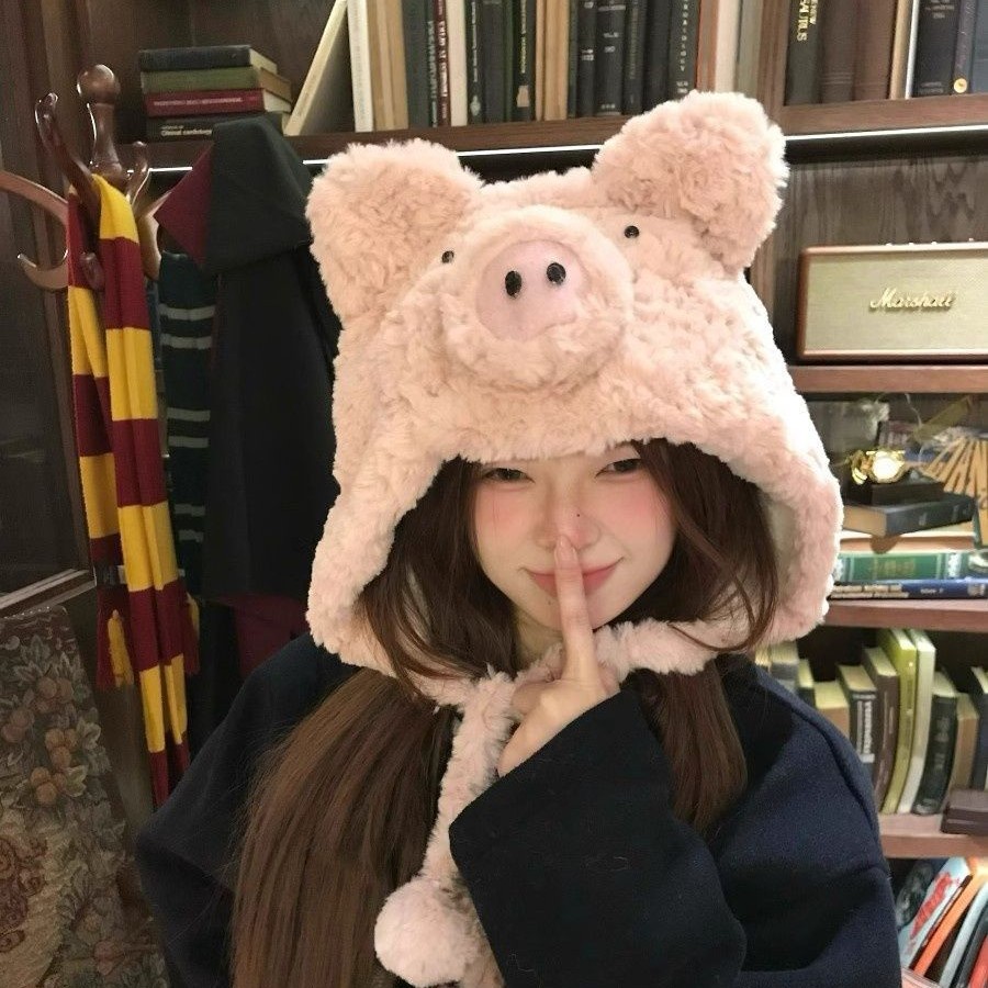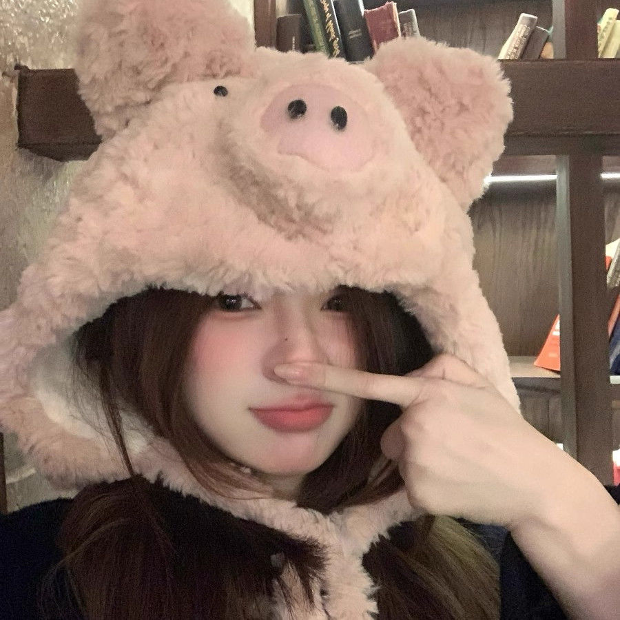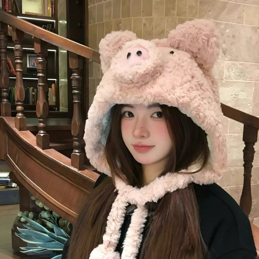 毛绒绒の小猪の帽子でかわいい卡通风格の冬用耳を暖かく守る保温性の加厚加工された帽子です 耳あて イヤーマフラー