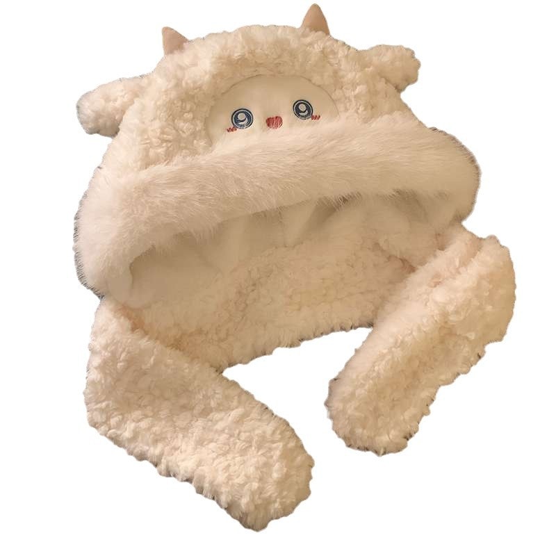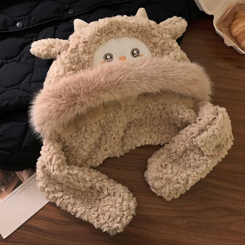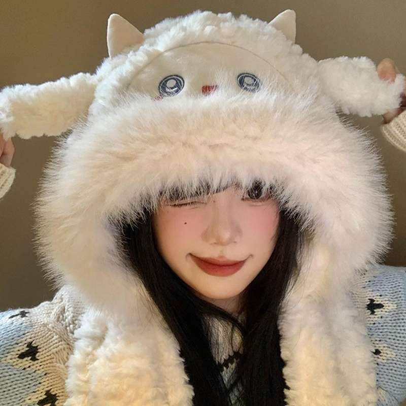 冬用の可愛い子羊モヘアキャップで防寒に適した温かい帽子とスカラフがセット耳を暖かく守るための加厚加工が施されているので特に寒い日にも適しています