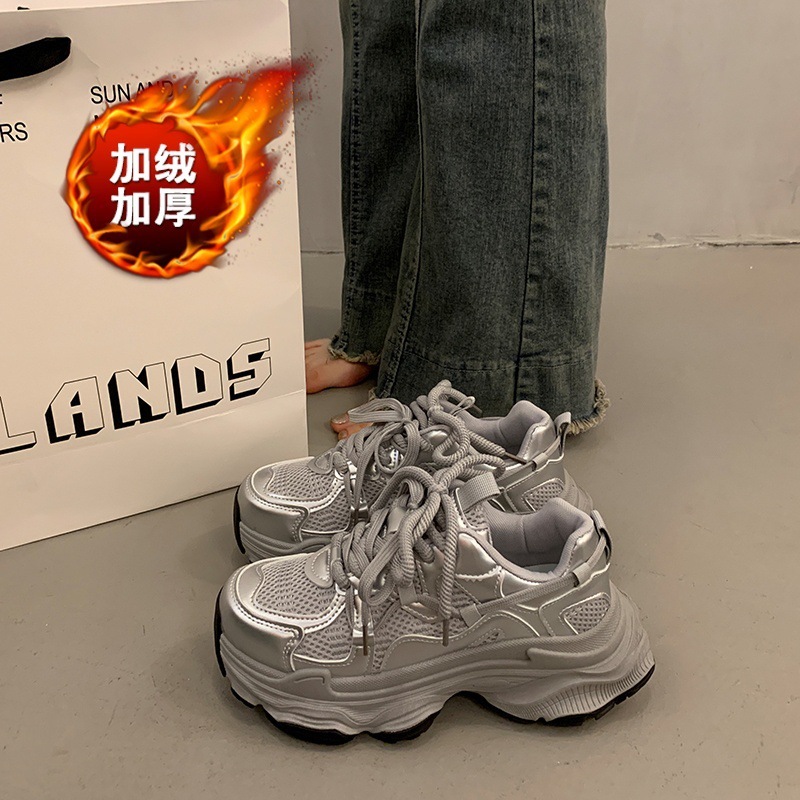 スニーカー シルバーパパシューズレディース2024秋冬新作厚底パッド入り暖かいスポーツシューズ その他 スポーツシューズ
