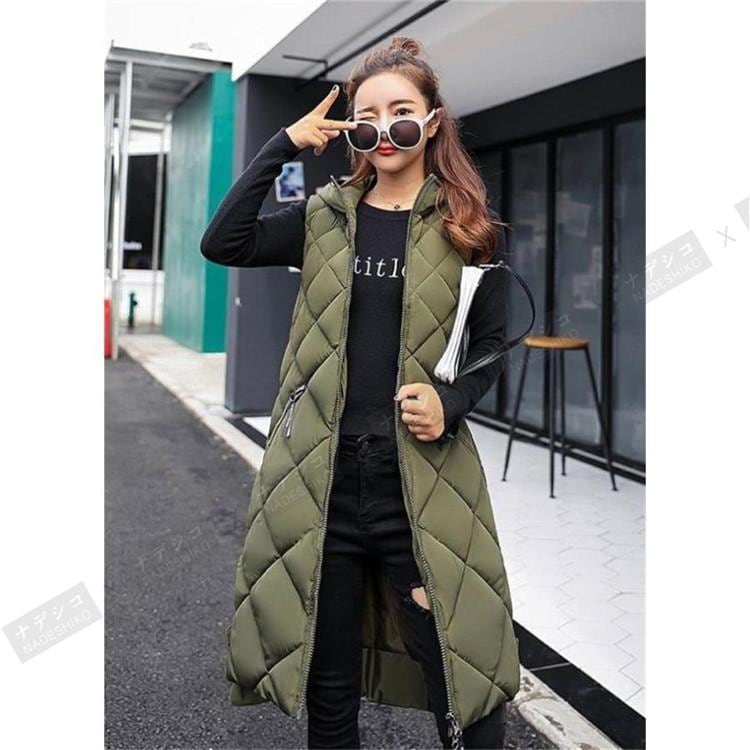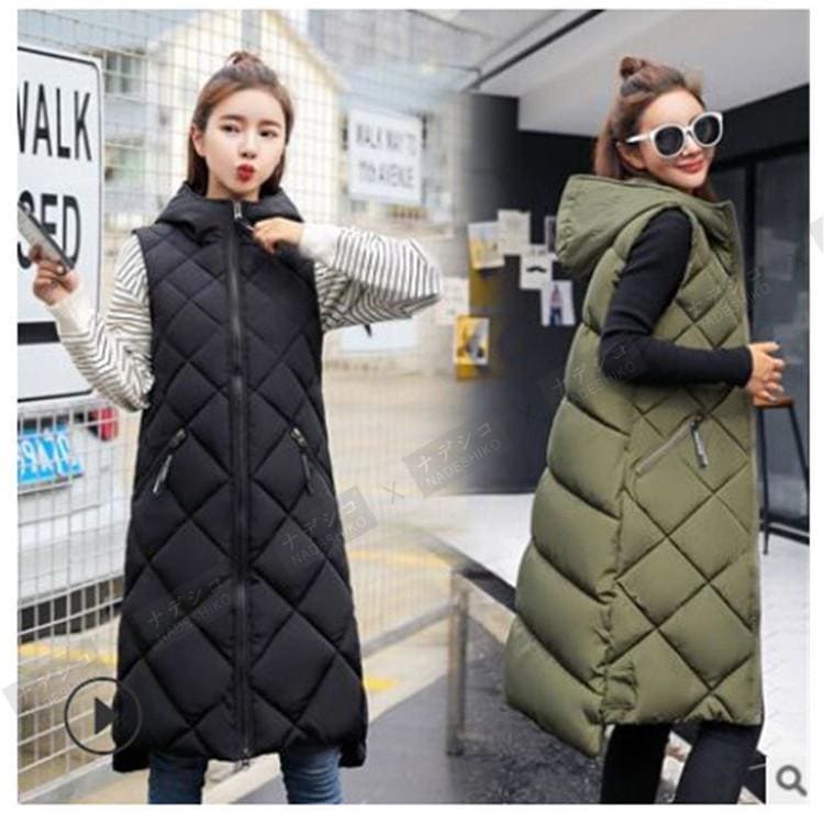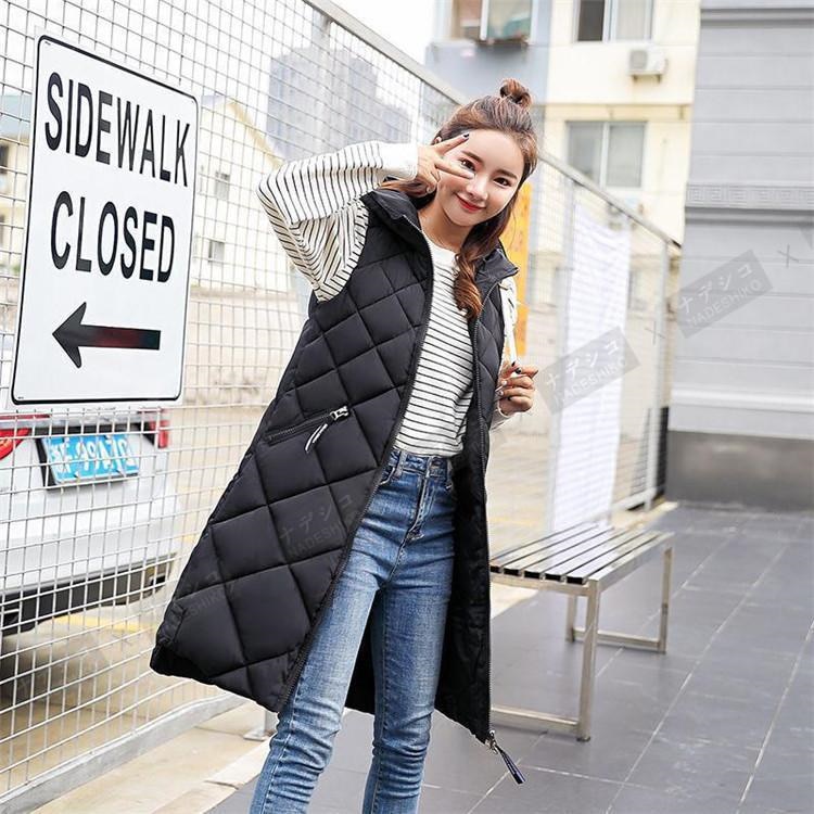 中綿ベスト レディース ロング丈 フード付き ノースリーブ ダウンベスト 無地 ジレ 前開き カジュアル ゆったり フォマール プレゼント ベスト