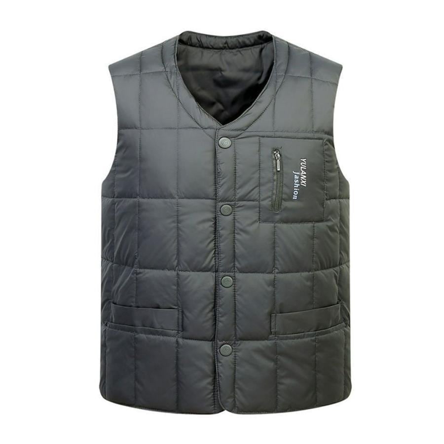 ダウンベスト メンズ ライトダウン キルティング ノーカラー 裏ボア ライナー Vネック 袖なし インナーダウン 軽量 暖か 着痩 防風 父 ギフト