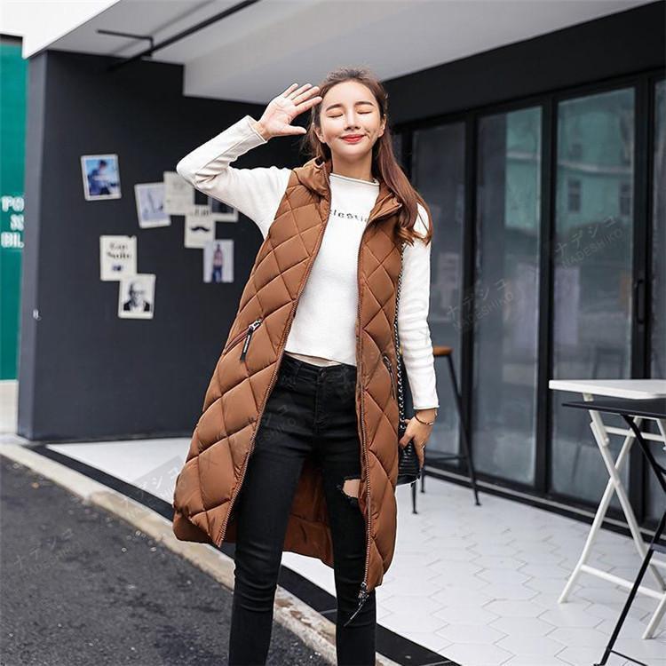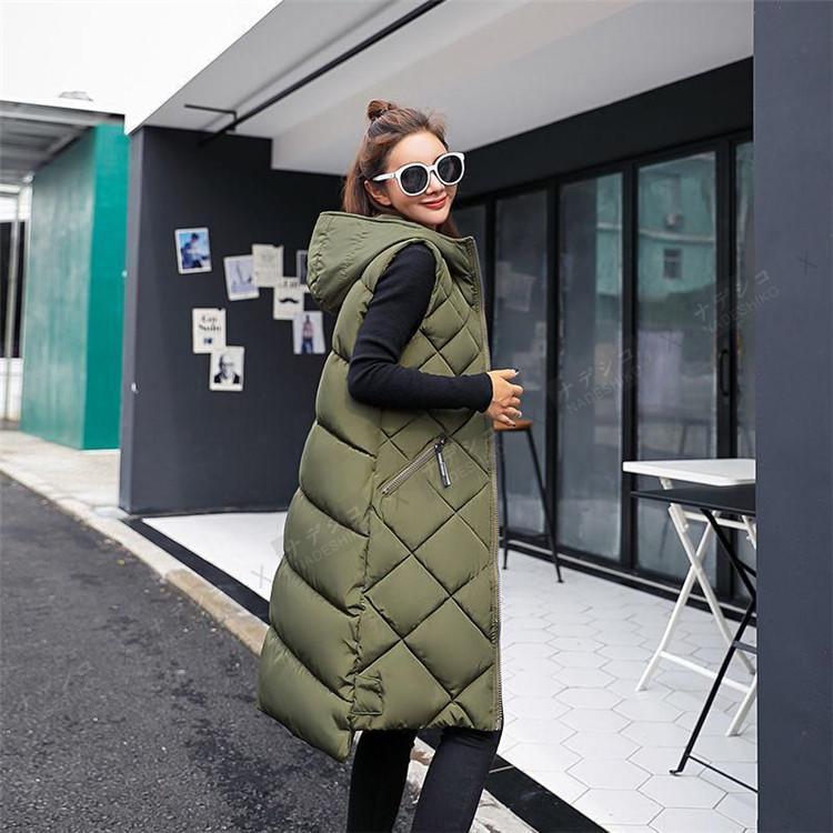 中綿ベスト レディース ロング丈 フード付き ノースリーブ ダウンベスト 無地 ジレ 前開き カジュアル ゆったり フォマール プレゼント ベスト
